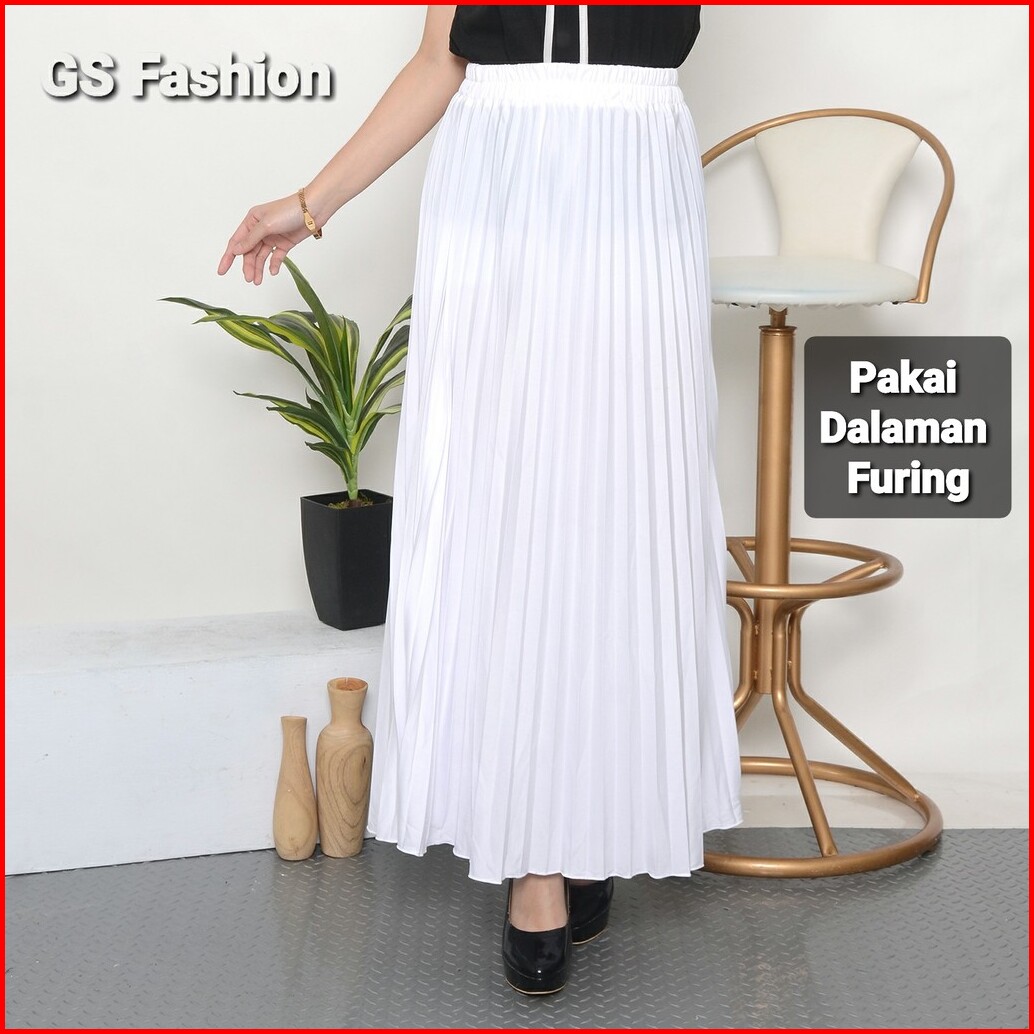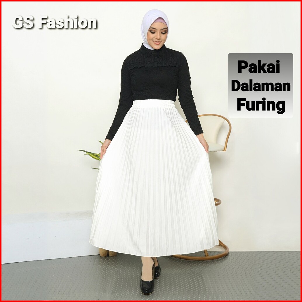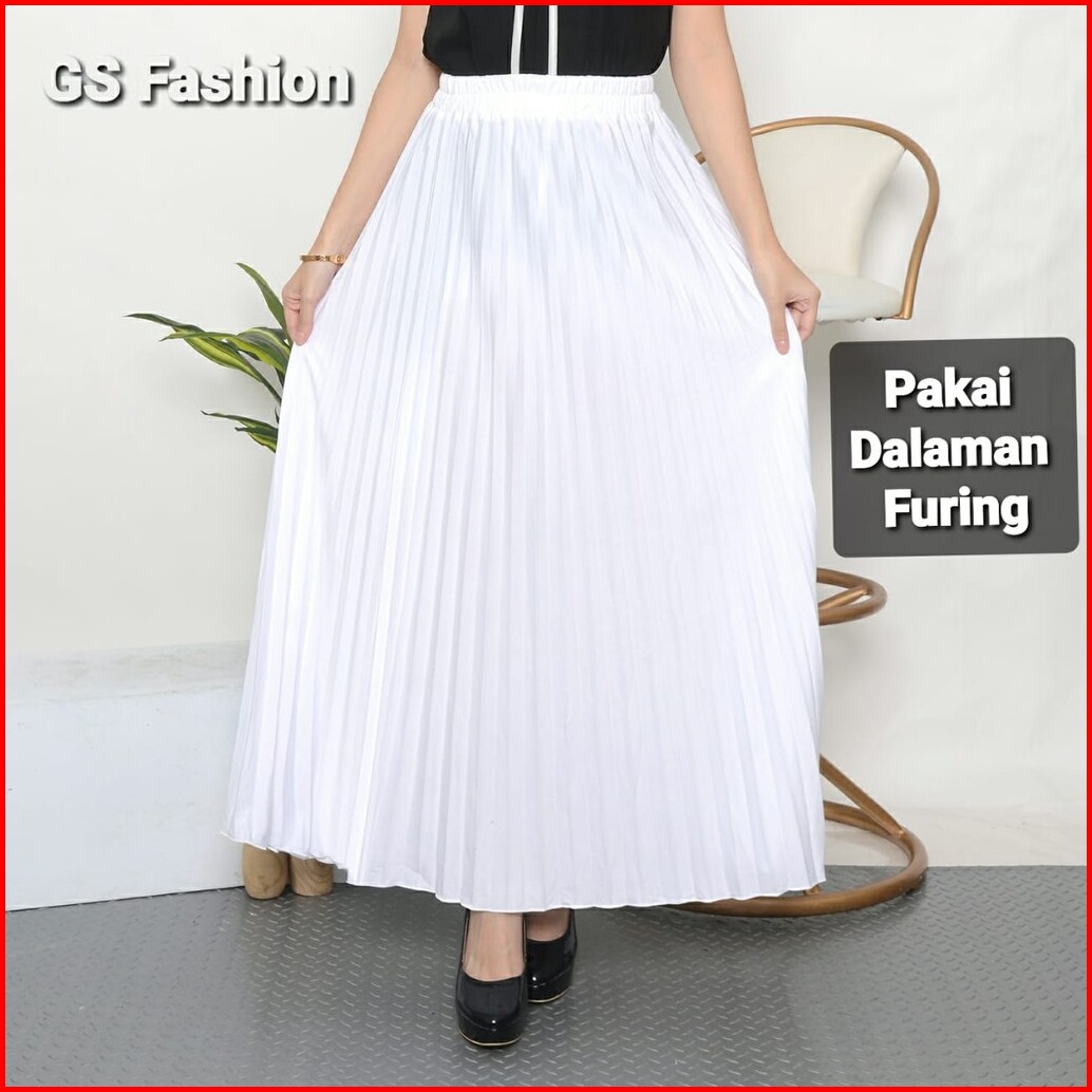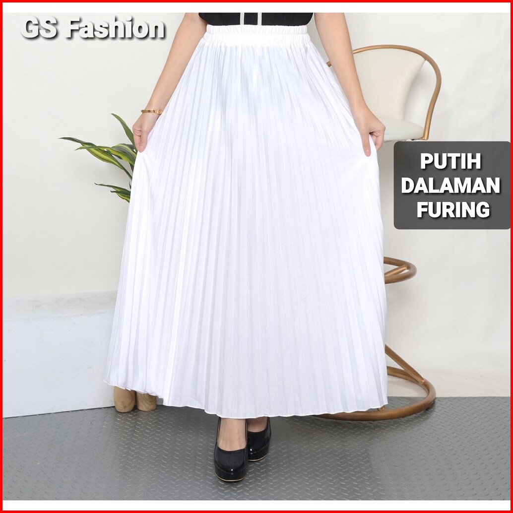 Gs-rok Plisket Premium Putih Ad Dalaman Furing Bahan Hyget Premium Rok Plisket Mus
