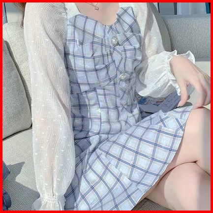 Dress Pantai Wanita Gaun Pesta Dress Bunga Korea Gaun Malam Dress Korea Wanita Dress Brukat Korean Style Navy Jumbo Pend
