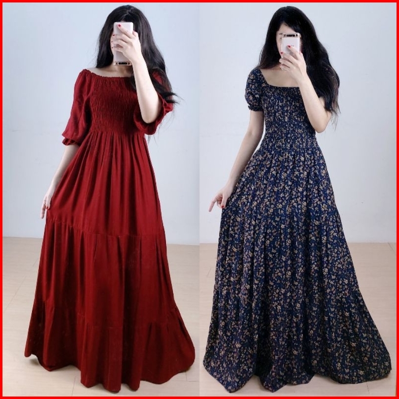 Dress Jumbo Long Dress Kembang Dress Maxi Allsize Dress Big Size Cantik Dress Wanita Dress Panjang Murah Dress Lengan Ba