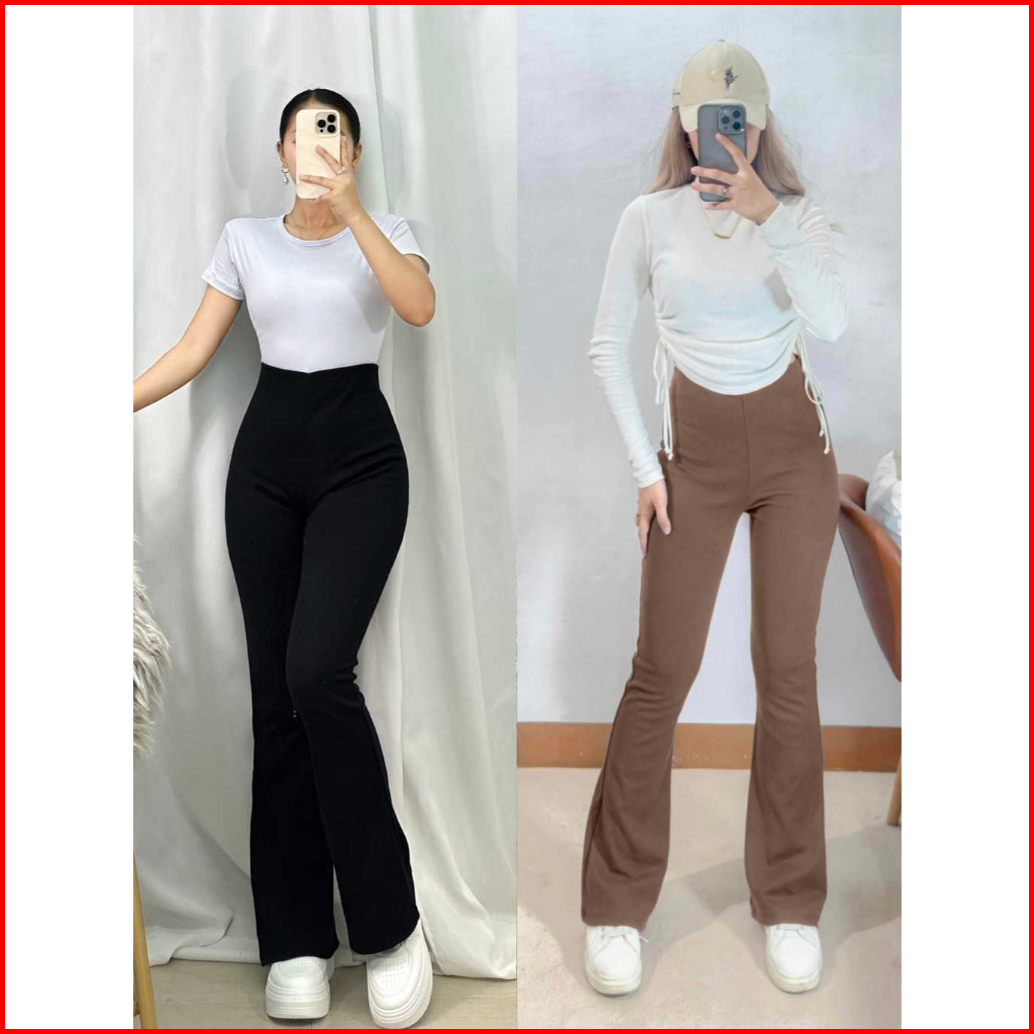 Celana Fit And Flare Pants Cutbray Scuba Pinggang Highwaist Bahan Stretch Melar Elastis Kulot Cutbray Scuba
