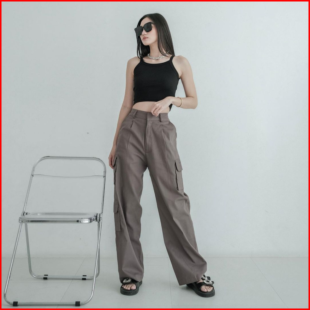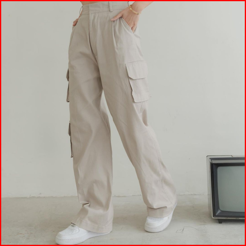 Cargo Pant High Waist Culottes Celana Kargo Panjang Kulot Pingggang Tinggi