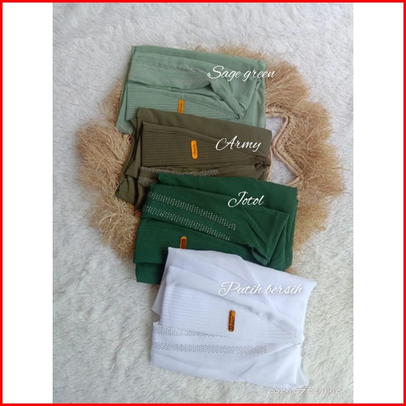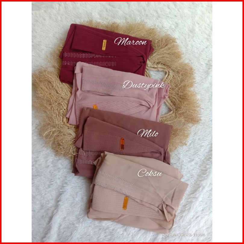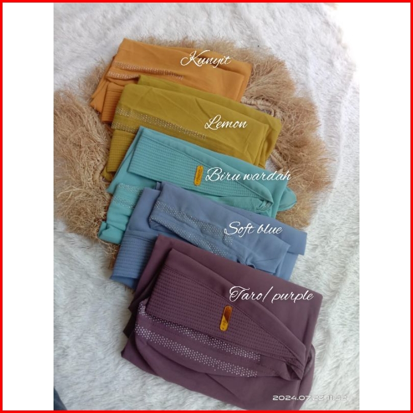 Hitam, Putih, Army, Sage, Coksu, Kunyit, Biru wardah, Dasty, Abu, Marun, Navy, Taro, Milo, Jotol, Lemon, Abu muda, Hijau muslimat, Denim, Mauve, Soft blue, Burgundy