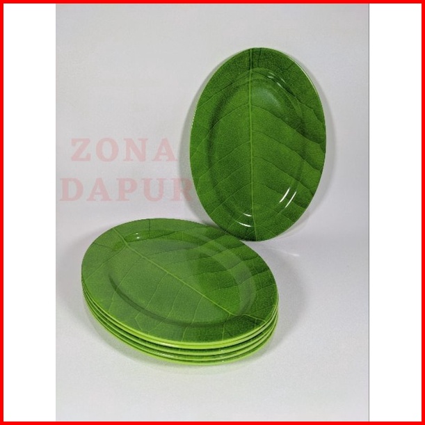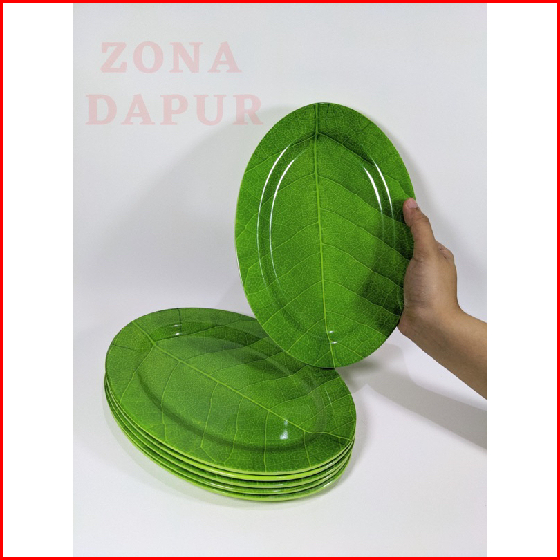 6 Pcs 12pcs - Piring Oval Melamin Motif Daun 10 Inch Singasingi - Piring Saji Lonjong Melamine