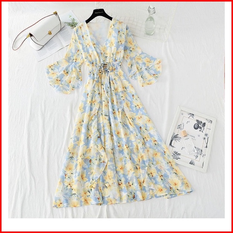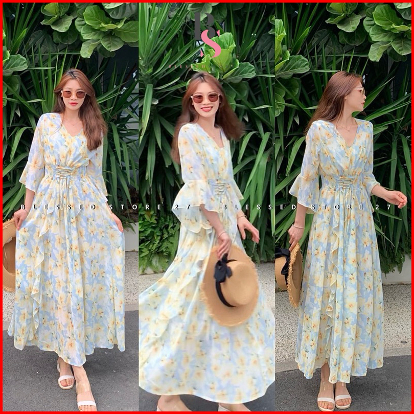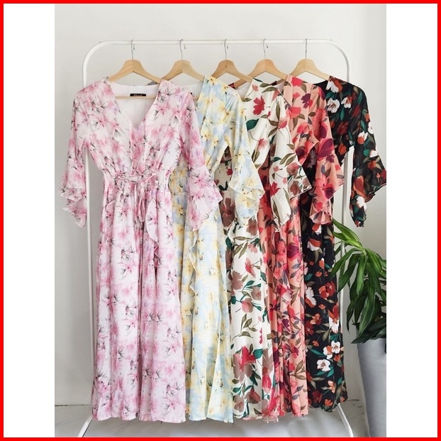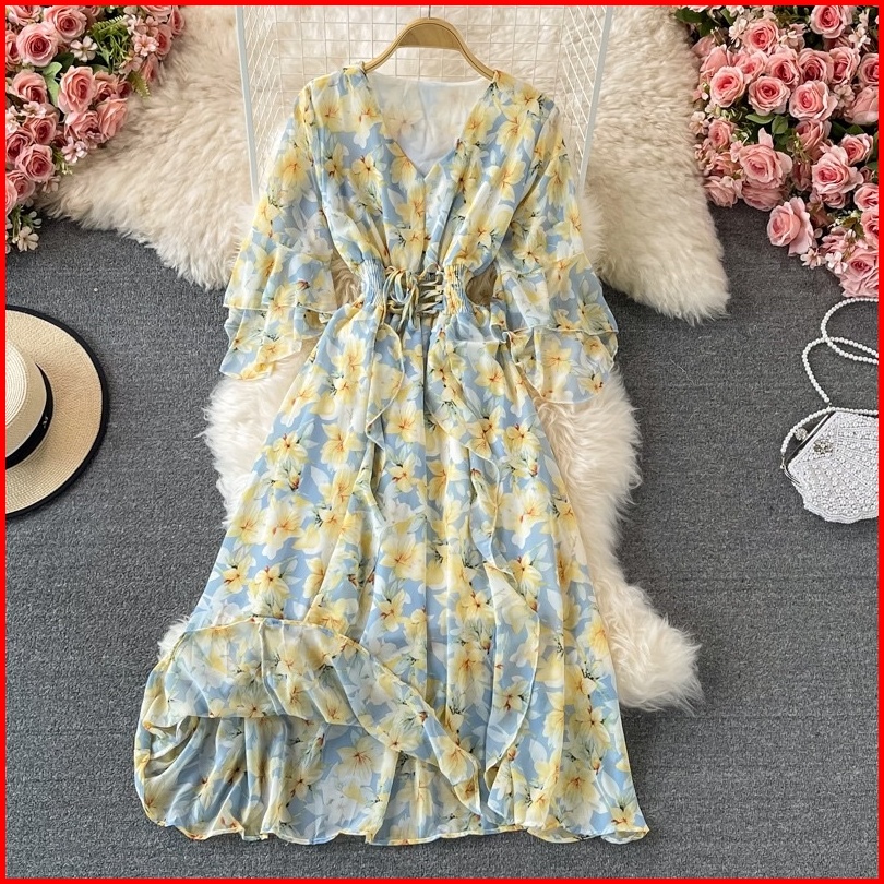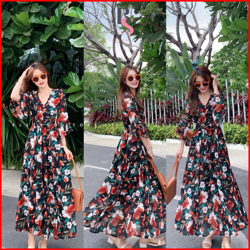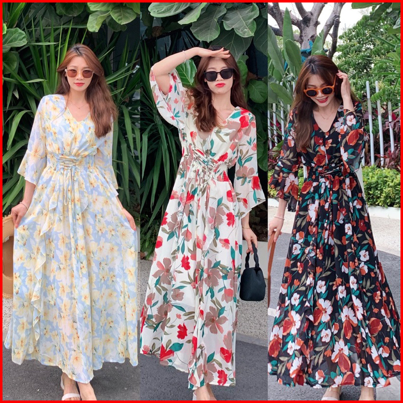 D1102 Gentle Korean Style Floral Vintage Maxi Dress Pantai Bumil Hijab
