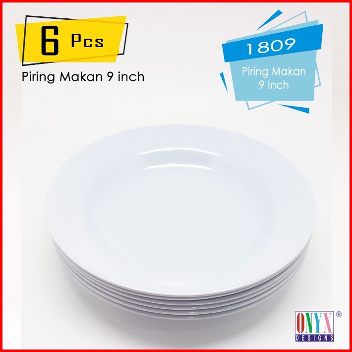 6 Pcs Piring Makan Melamin 9 Inch Onyx - 1809 Polos