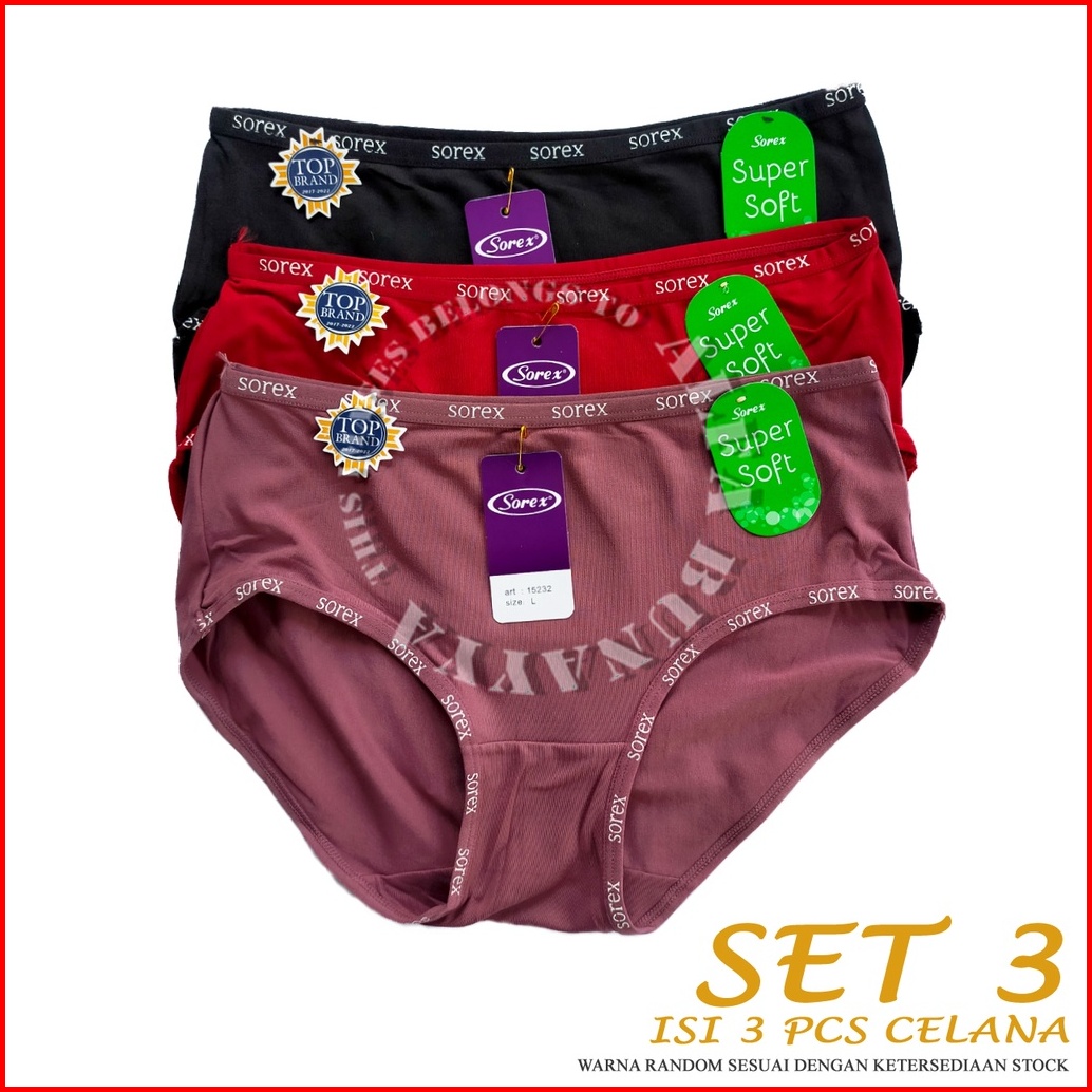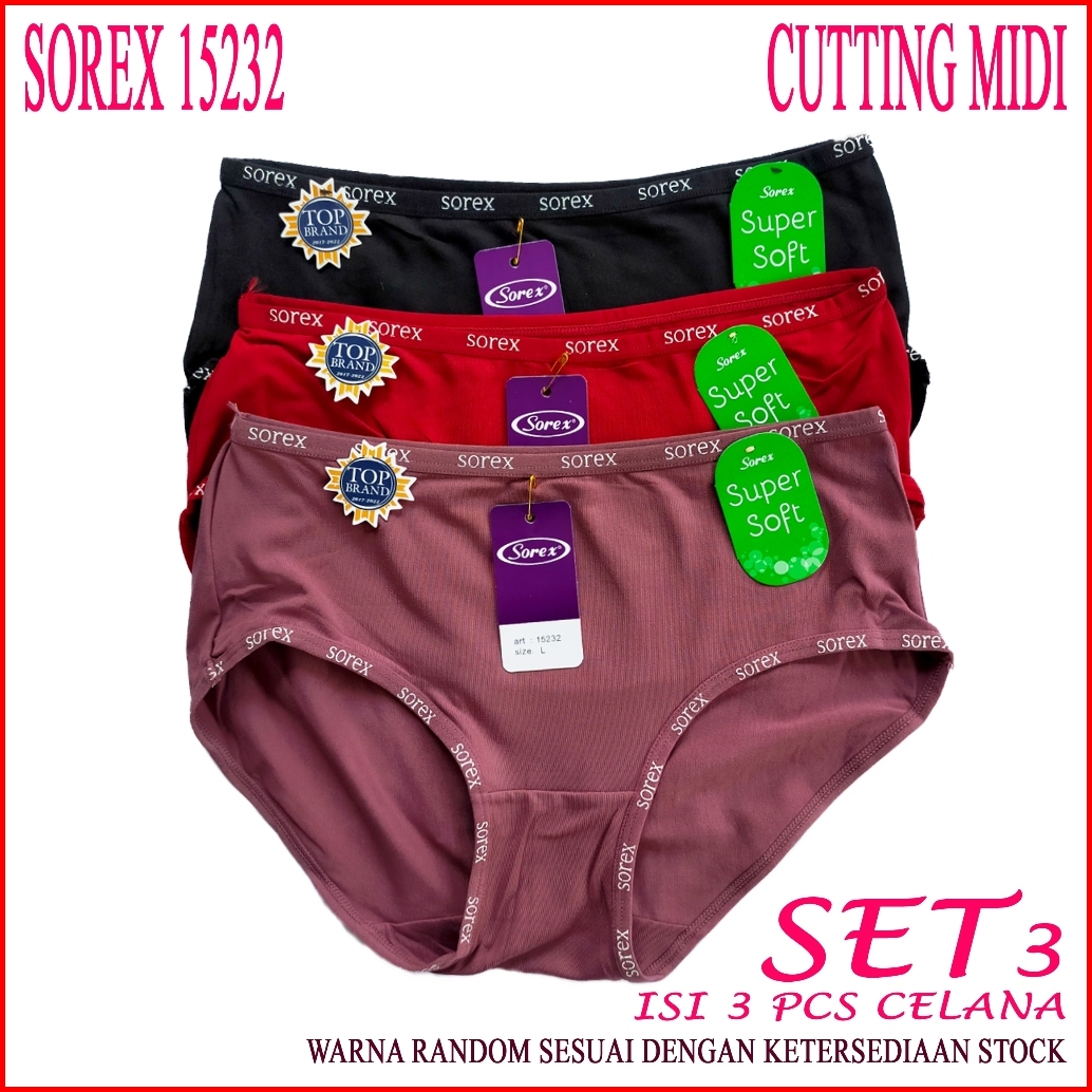3 Pcs Celana Dalam Wanita Sorex 15232 - Midi Cutting - Super Soft Cd Underwear - Pakaian Dalam Wanita Katun Cotton