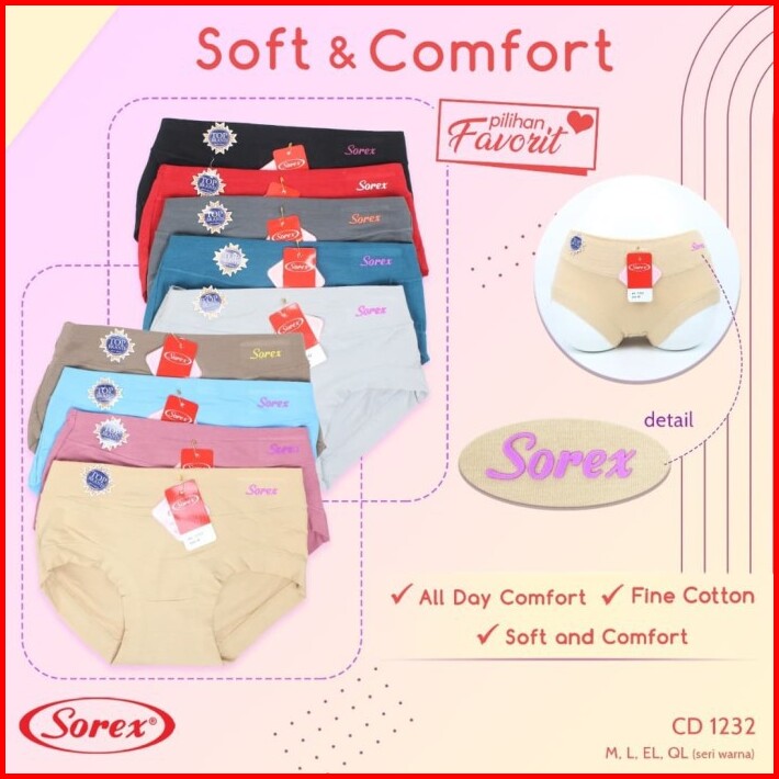 Celana Dalam Wanita Sorex 12pcs 1232 Cd Wanita Sorex Katun Cd Sorex Katun Original Berkualitas