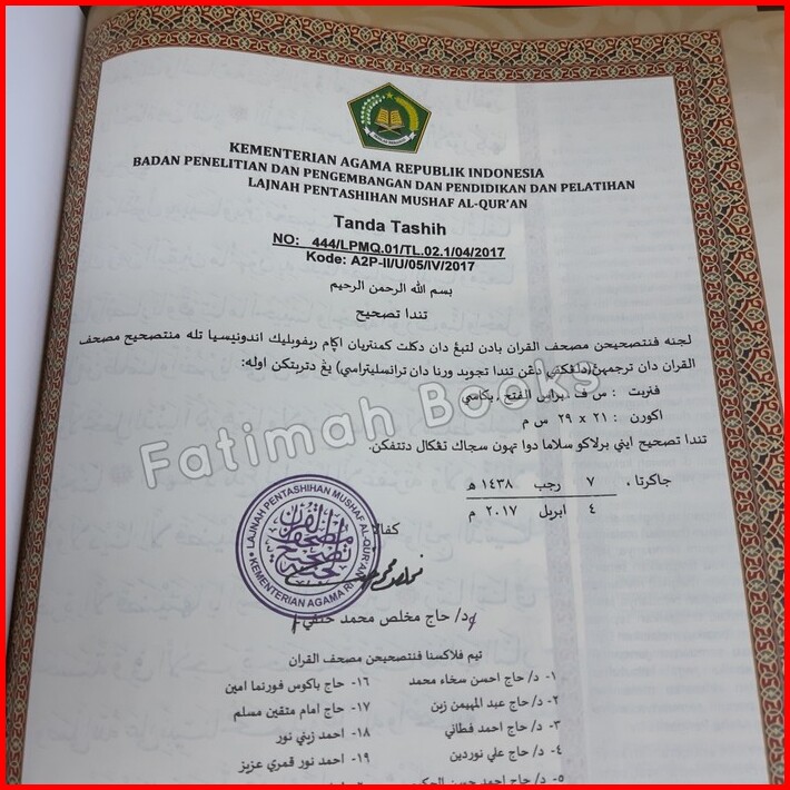 Alquran Al Misbah A4 Al Quran Terjemah Latin Dan Tajwid Warna Ukuran Besar