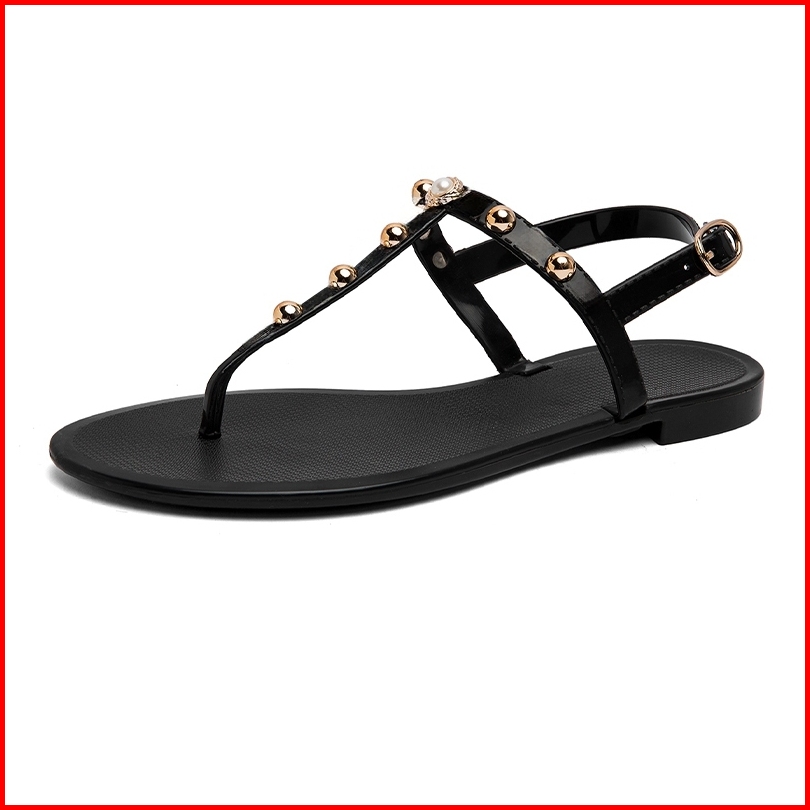 Sandal Jepit Wanita Goldie Jelly Casual Sandal Beads Sendal Slop Flat Cewek Kasual Warna Hitam Korean Style Santai Premi