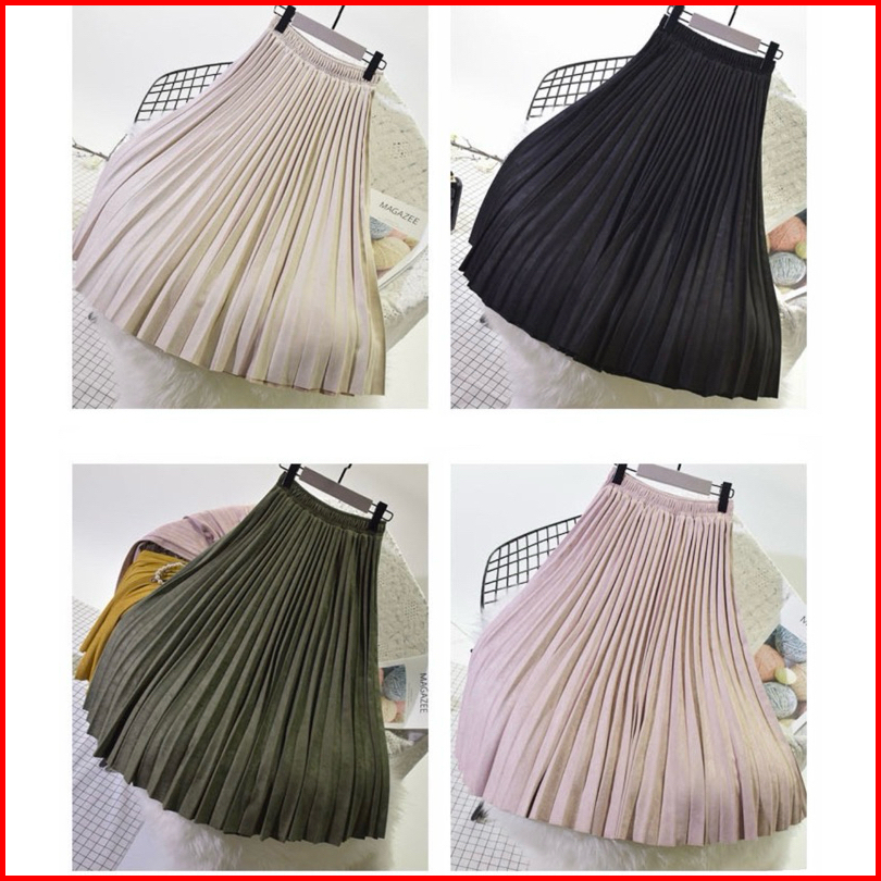 Ukuran 7 9 Rok Suede Rok Suede Import Maxi Skirt Motif Lucu Import Plisket Warna Pastel
