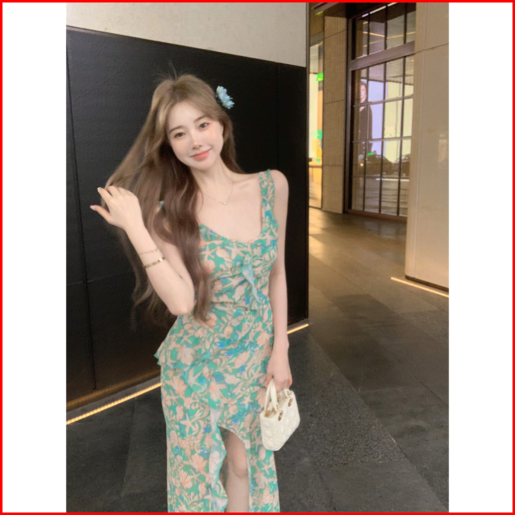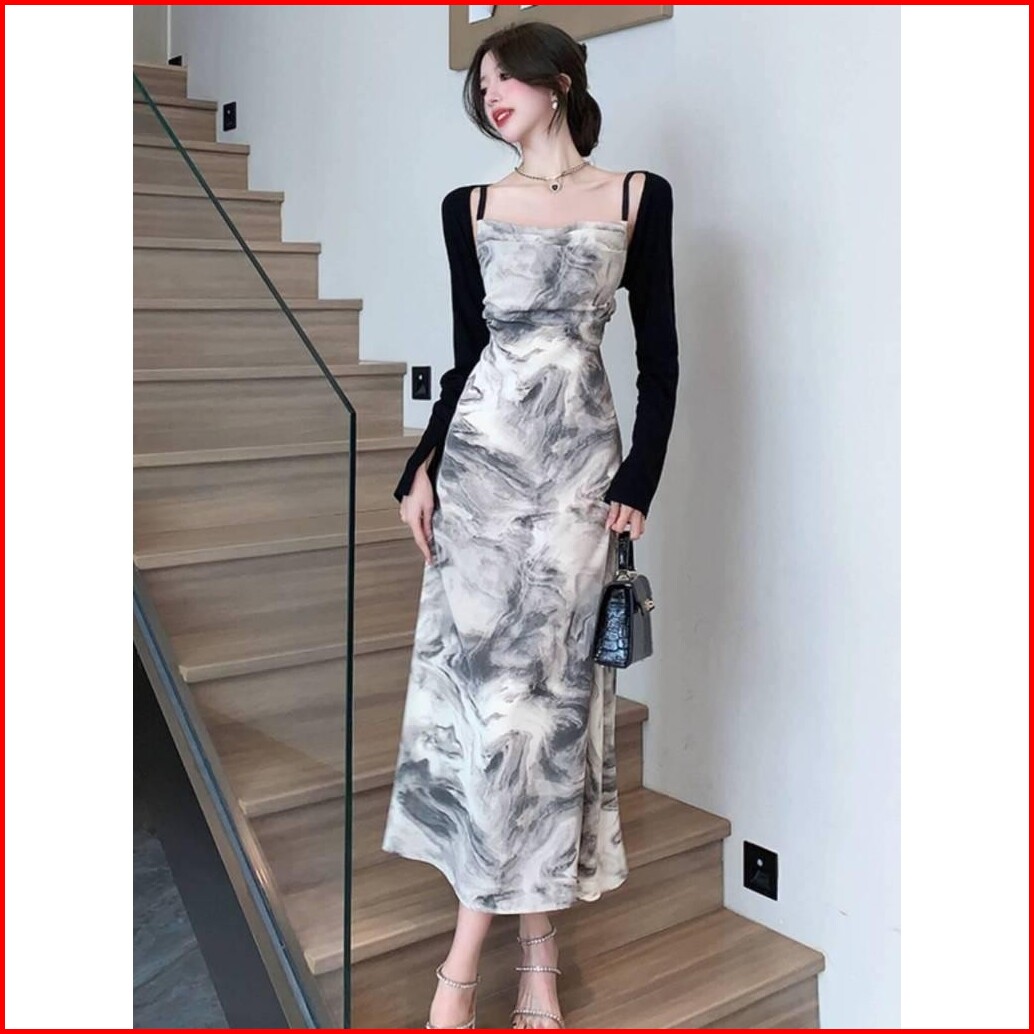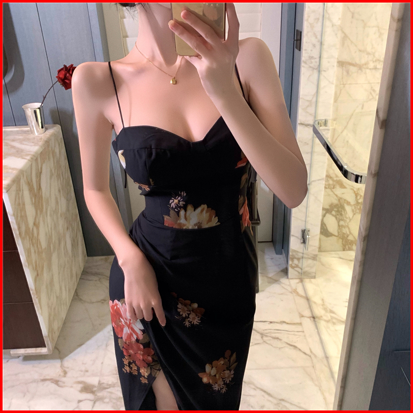 7846 Black Vintage Floral Summer Dress Elegant Gray Batik Tanpa Lengan Long Dress Pesta Seksi Sexy Dress Hitam Panjang T