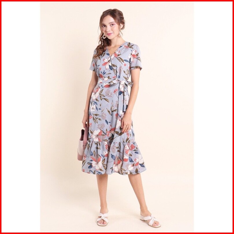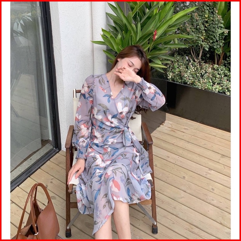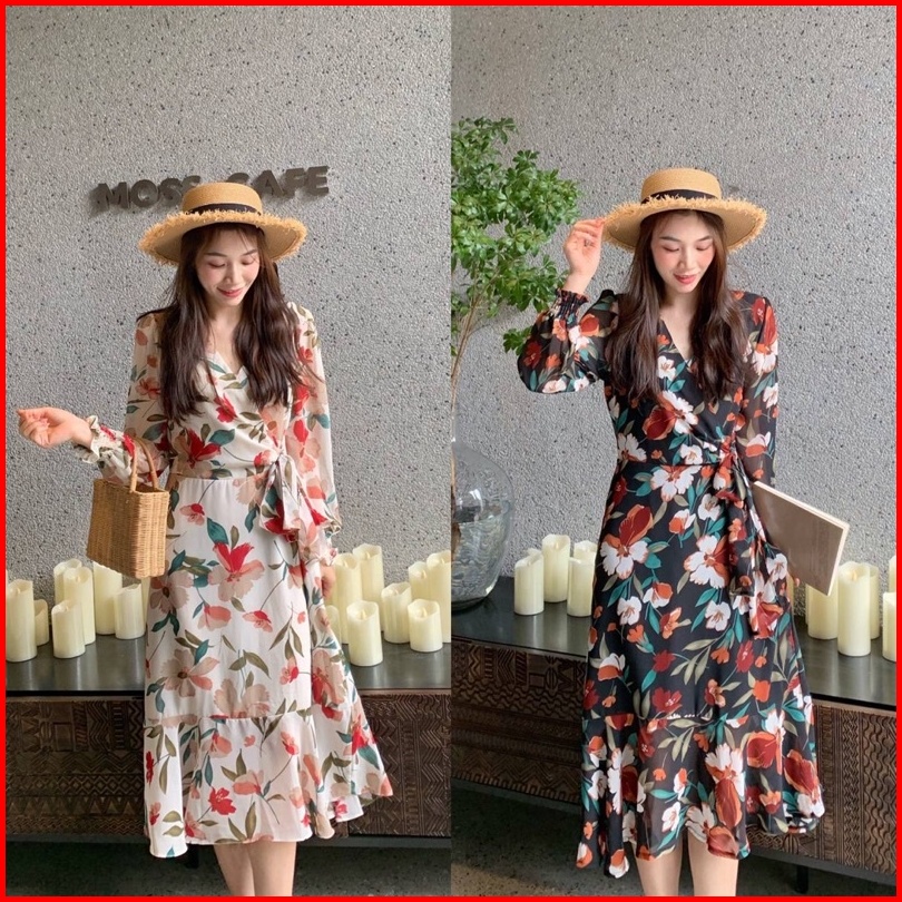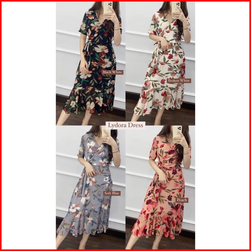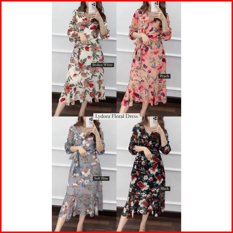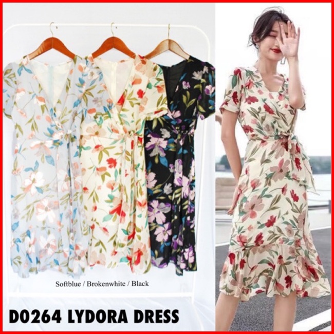 D0264 Lydora Korean Style Floral Vintage Midi Dress Pantai Summer Musim Panas