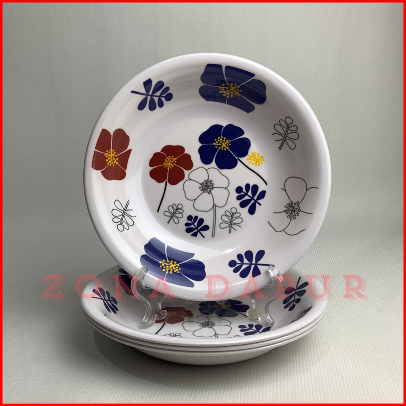6 Pcs 1 Lusin - Piring Lontong Melamine Singasingi 9 Inch 23 Cm Piring Melamin Cekung Motif Bunga