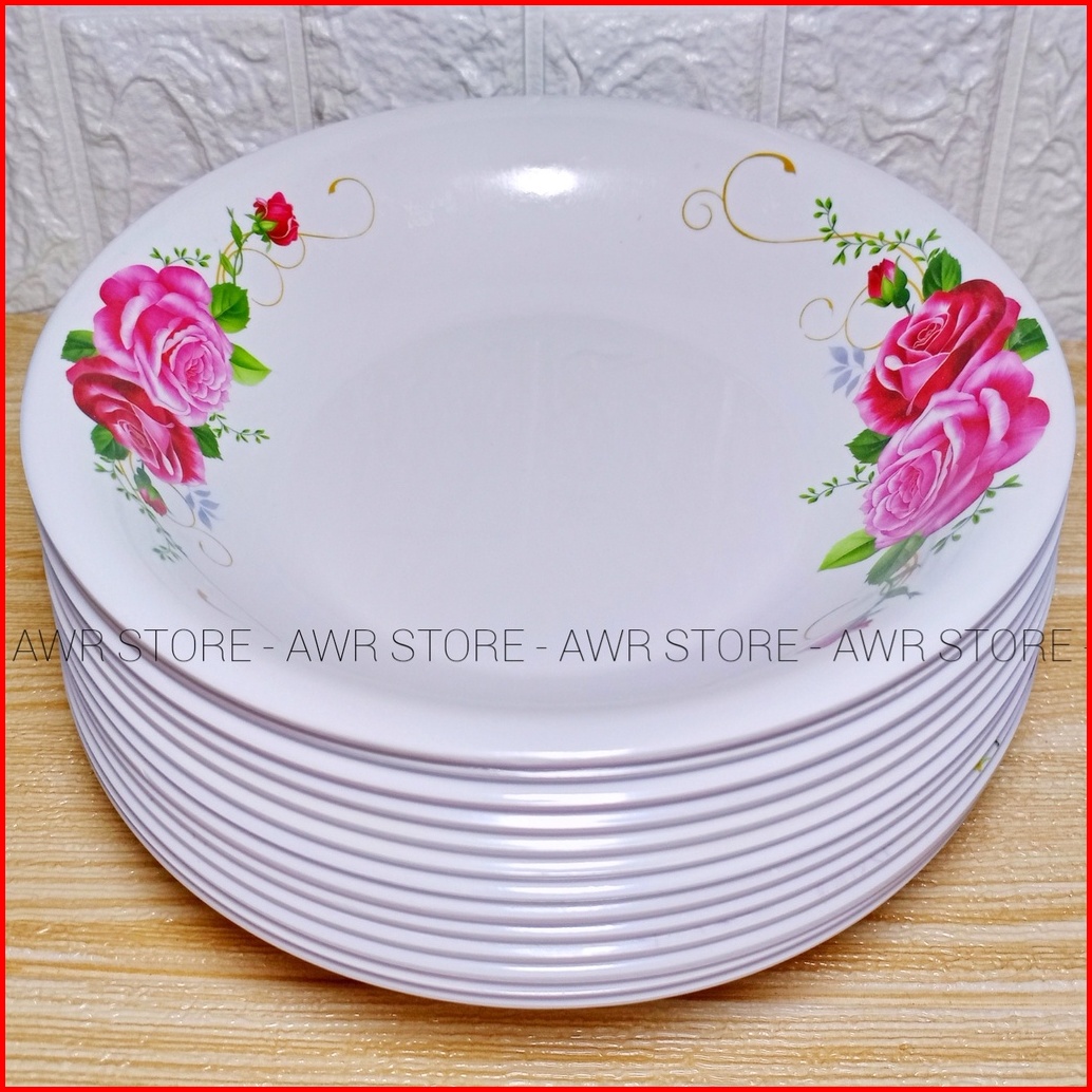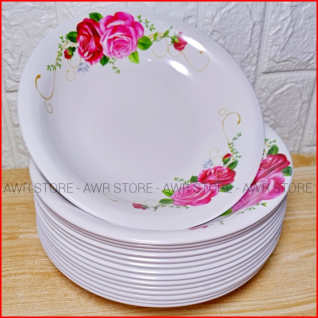 Promo Harga Grosir 6pcs Piring Melamin Motif Kembang Terbaru Asli Singa Singi Diameter 23cm Tahan Lama