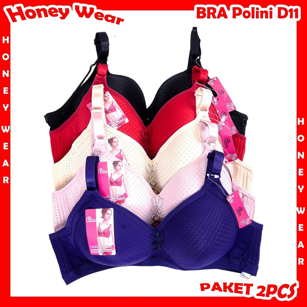 Hw - Promo Hemat 2 Pcs Bra Wanita Jumbo Tanpa Kawat Kait 3 Cup Besar Polini D11