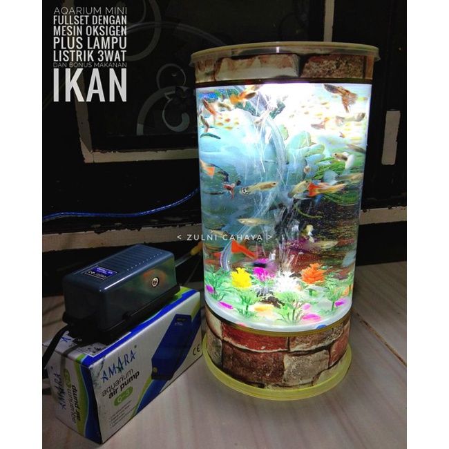 Fullset Aquarium Jumbo! Dilengkapi Mesin Oksigen√ Lampu Colokan Listrik 3wat√ ( Real pict )