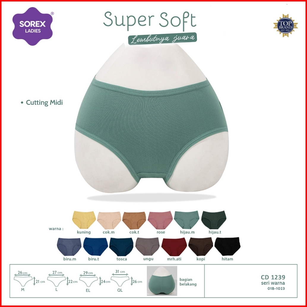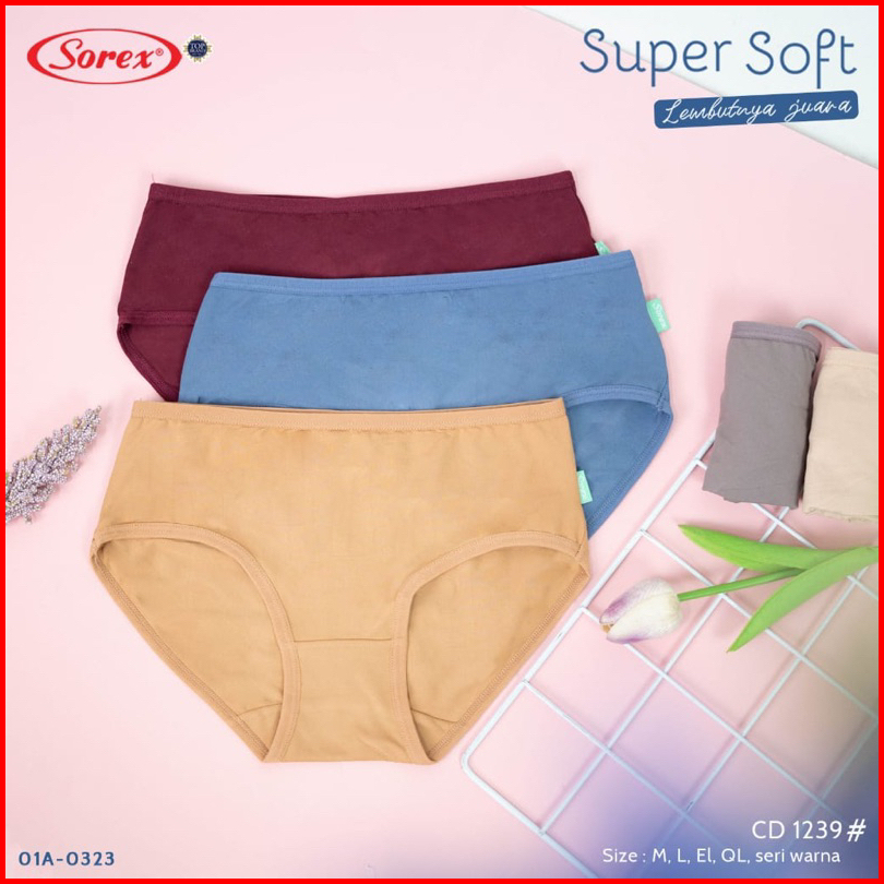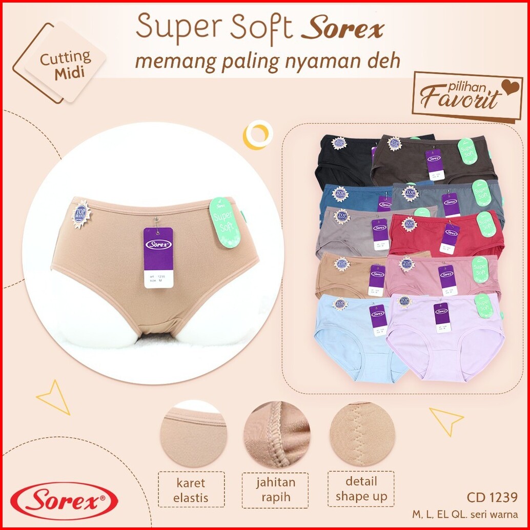 6pc Cd Sorex 1239 Sorex Celana Dalam Basic Super Soft 1239 Cutting Midi Lembut - Dyarshop