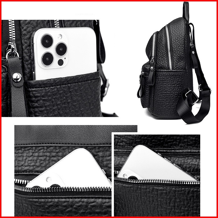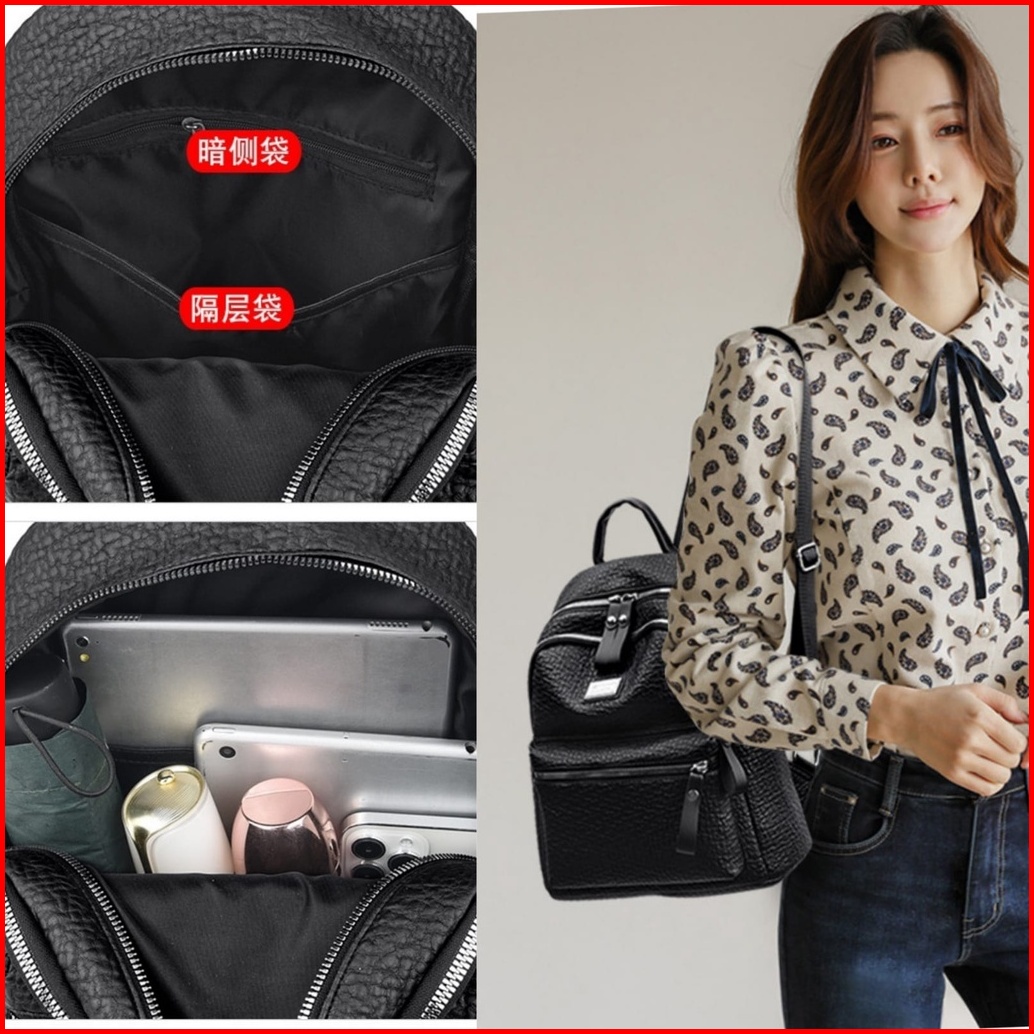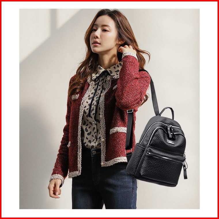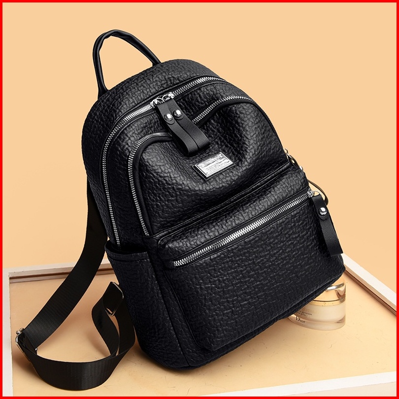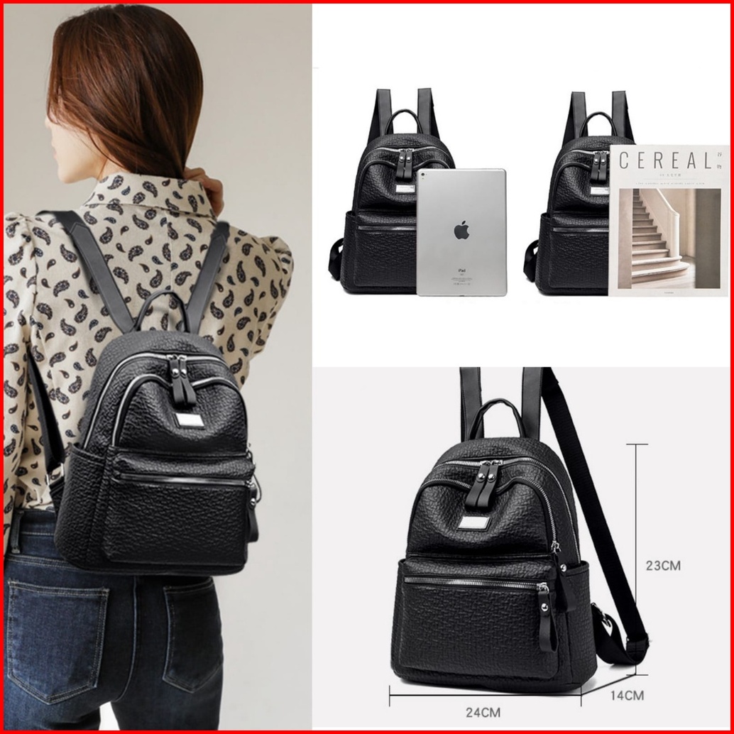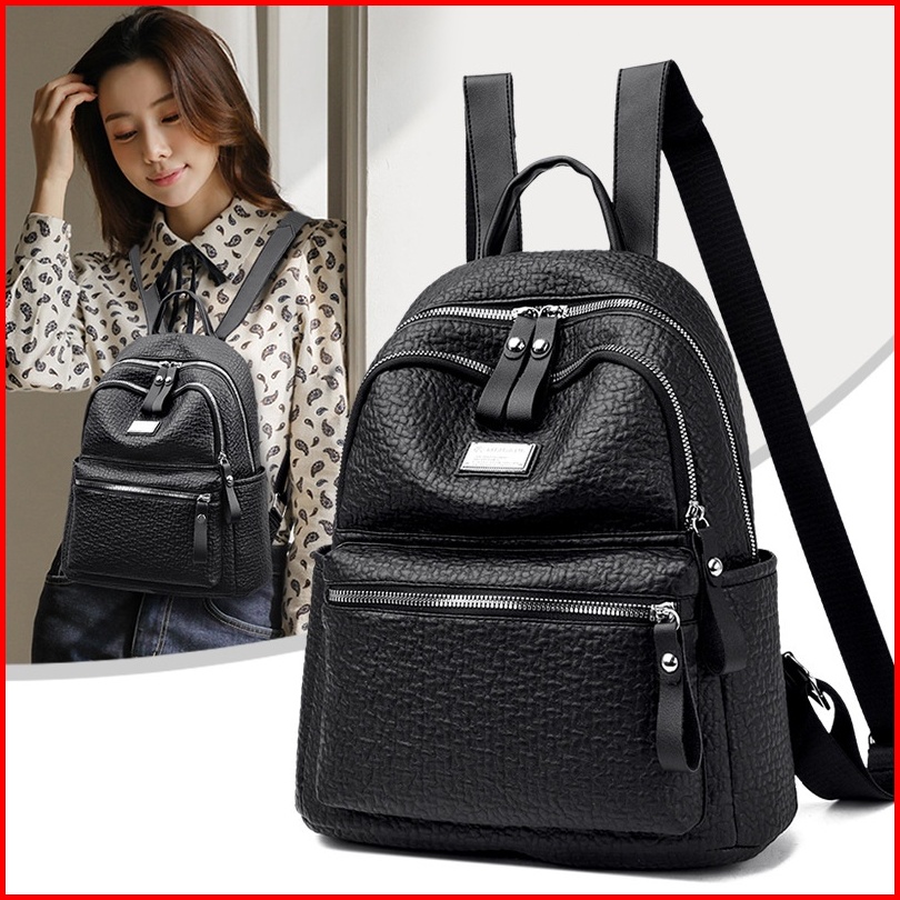 Tas Ransel Wanita Korea Ta717b5 Kulit Croco Hitam Cultiva Backpack Sekolah Kerja Cewek Kuliah Gendong Remaja Punggung Br