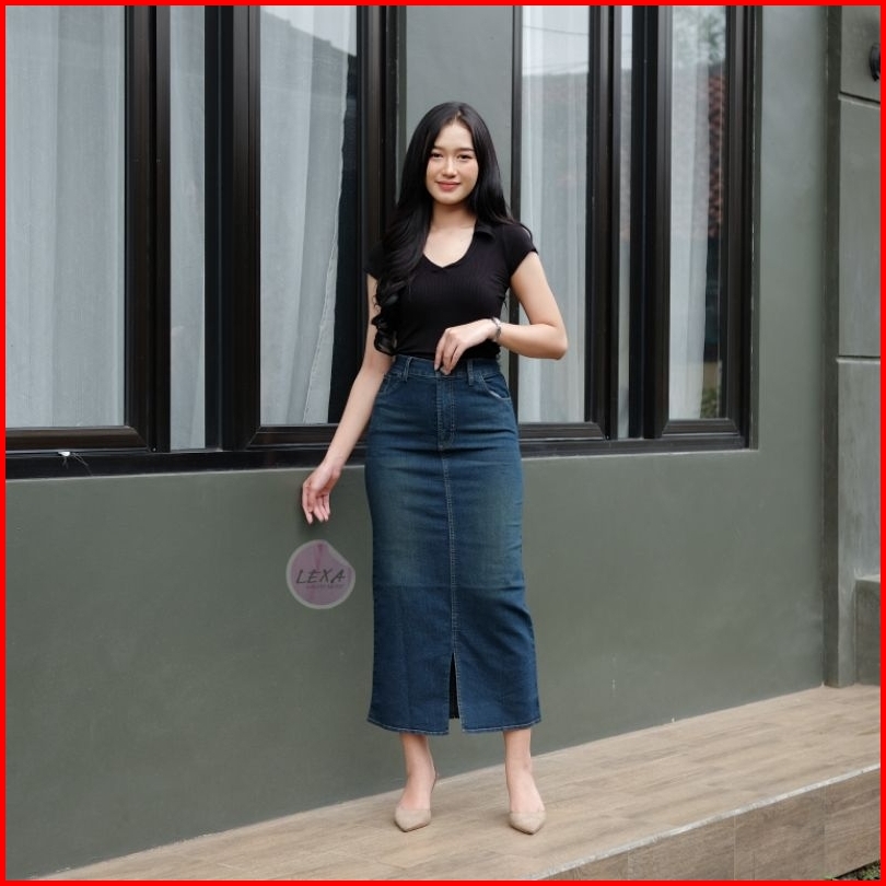 Lexa - Rok Span Jeans Cessa Skirt Wanita Highwaist Streech