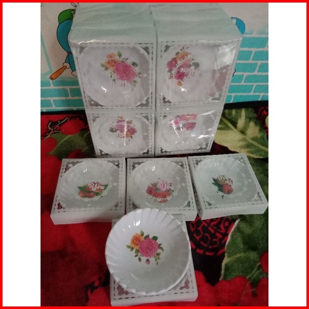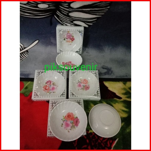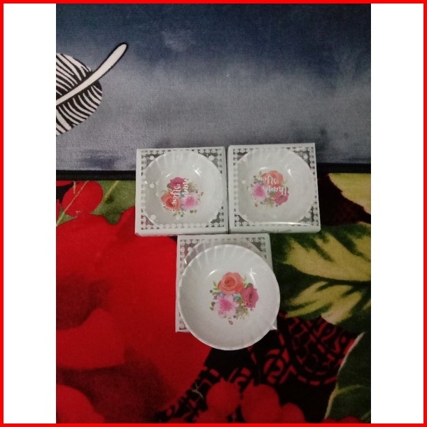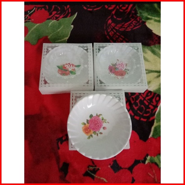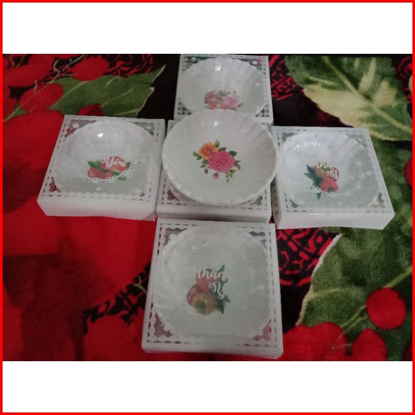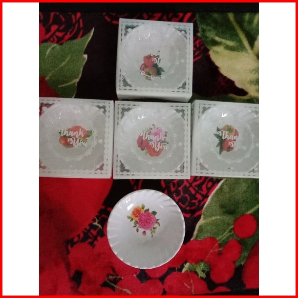 Souvenir Pernikahan Mangkok Bulat Ceper Kemasan Mika Motif 50pcs Bonus Kartu Ucapan Terima Kasih