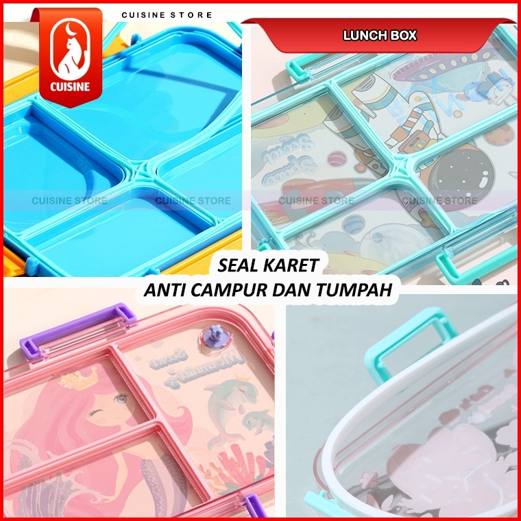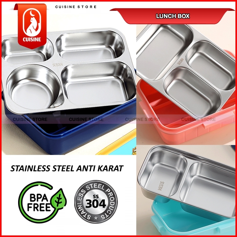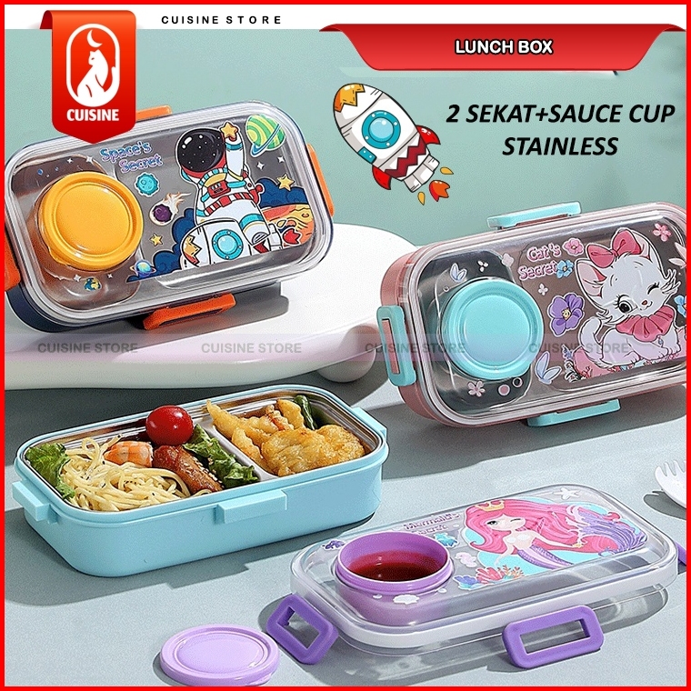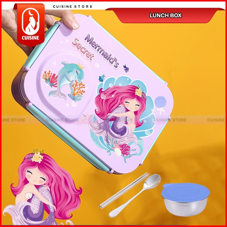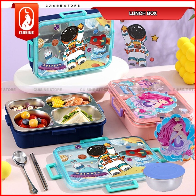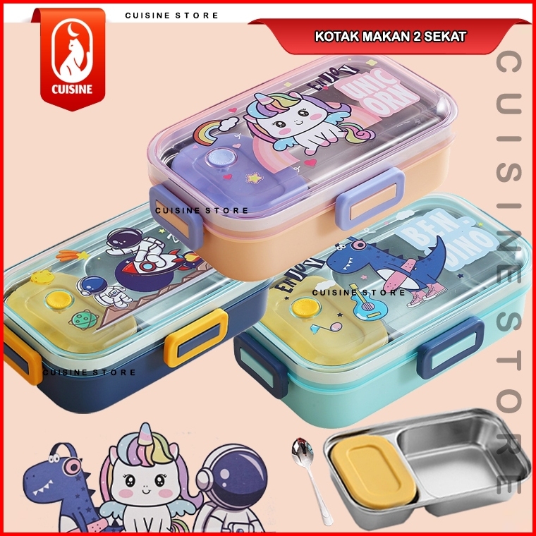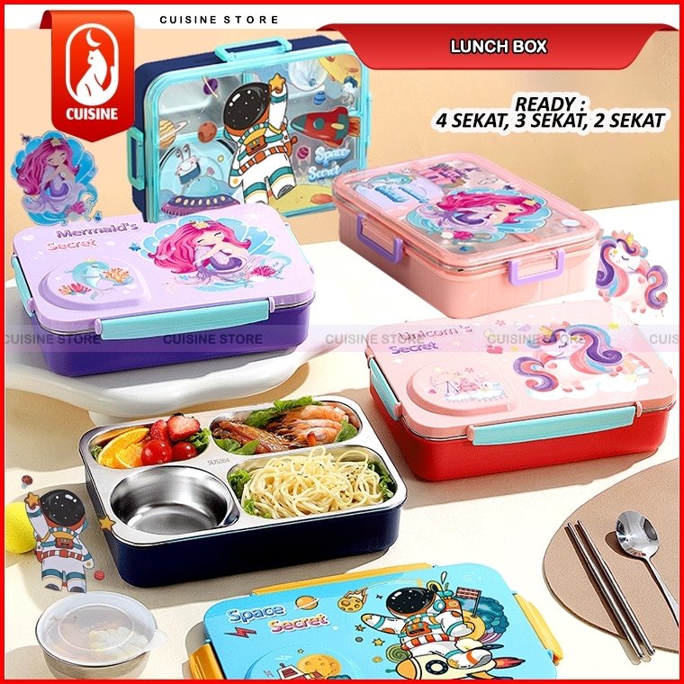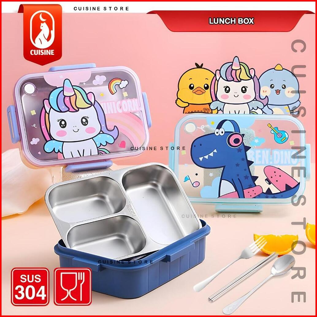 Lunch Box Set Anak Sekolah Stainless 304 Sekat 3 Dan 4 Kotak Makan Bekal Motif Bebek Dino Unicorn