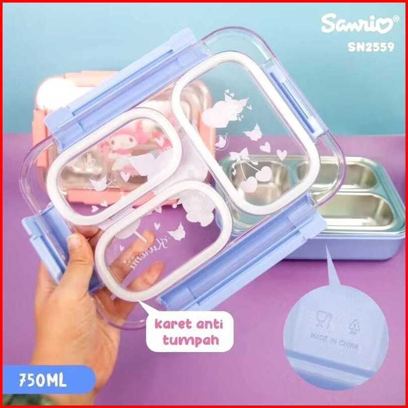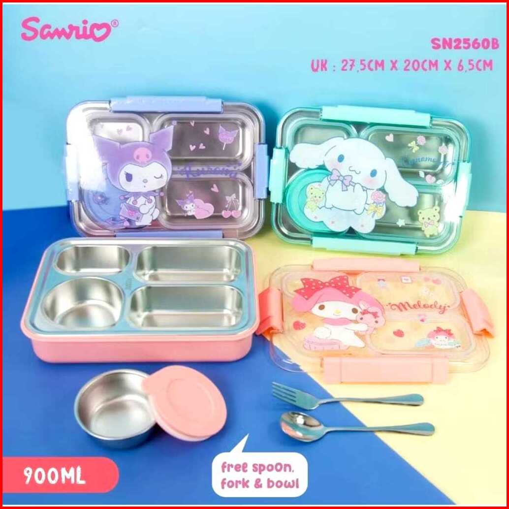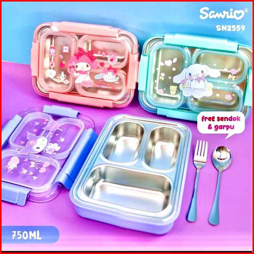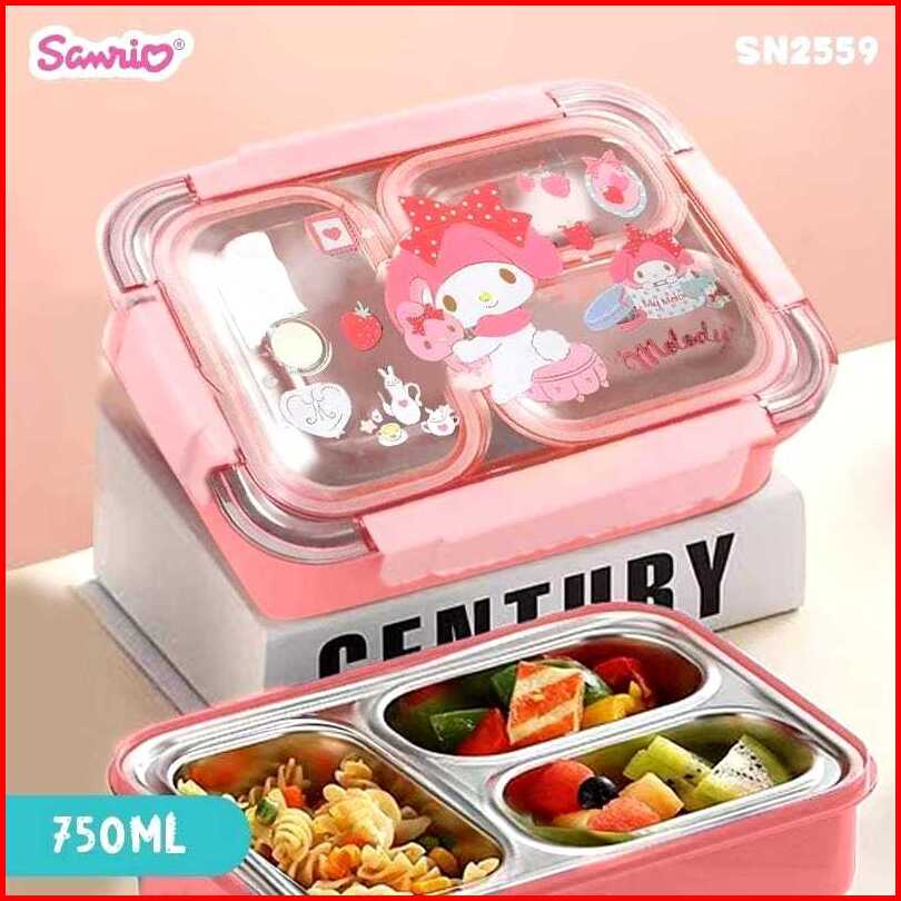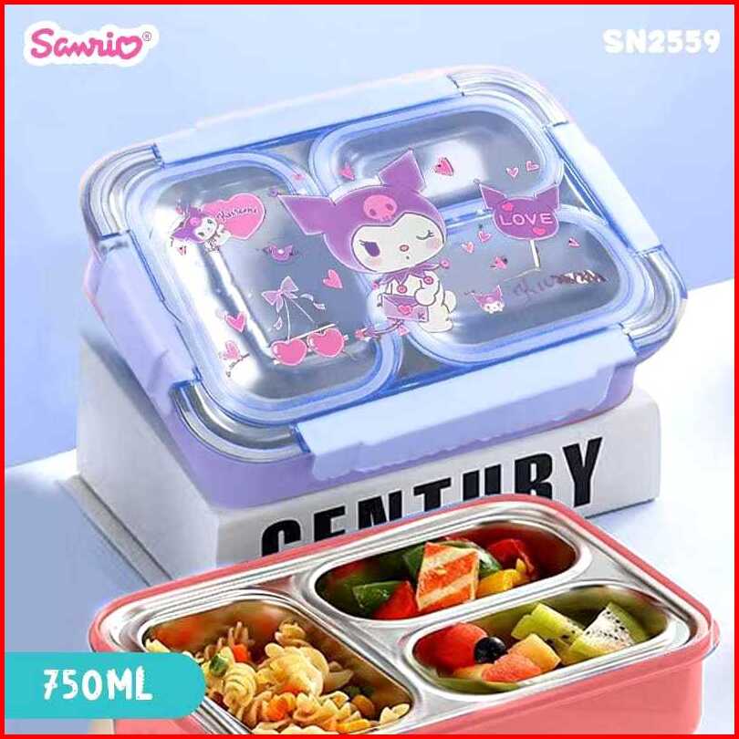 Lunch Box Stainless 304 Sn2559 3 Sekat 750ml Karakter Kuromi Melody Cinnamoroll