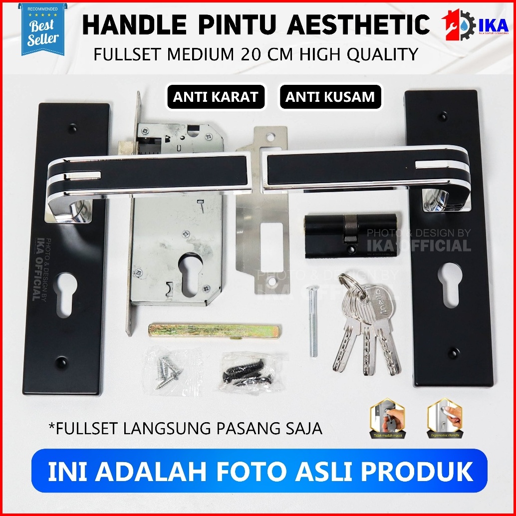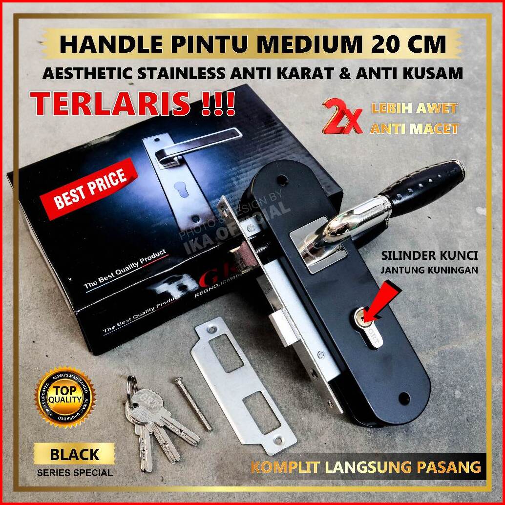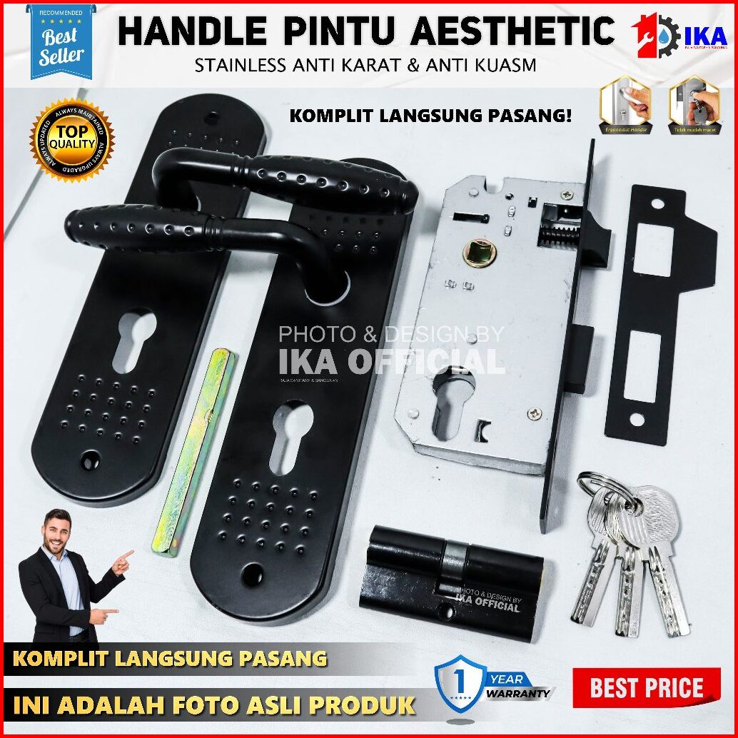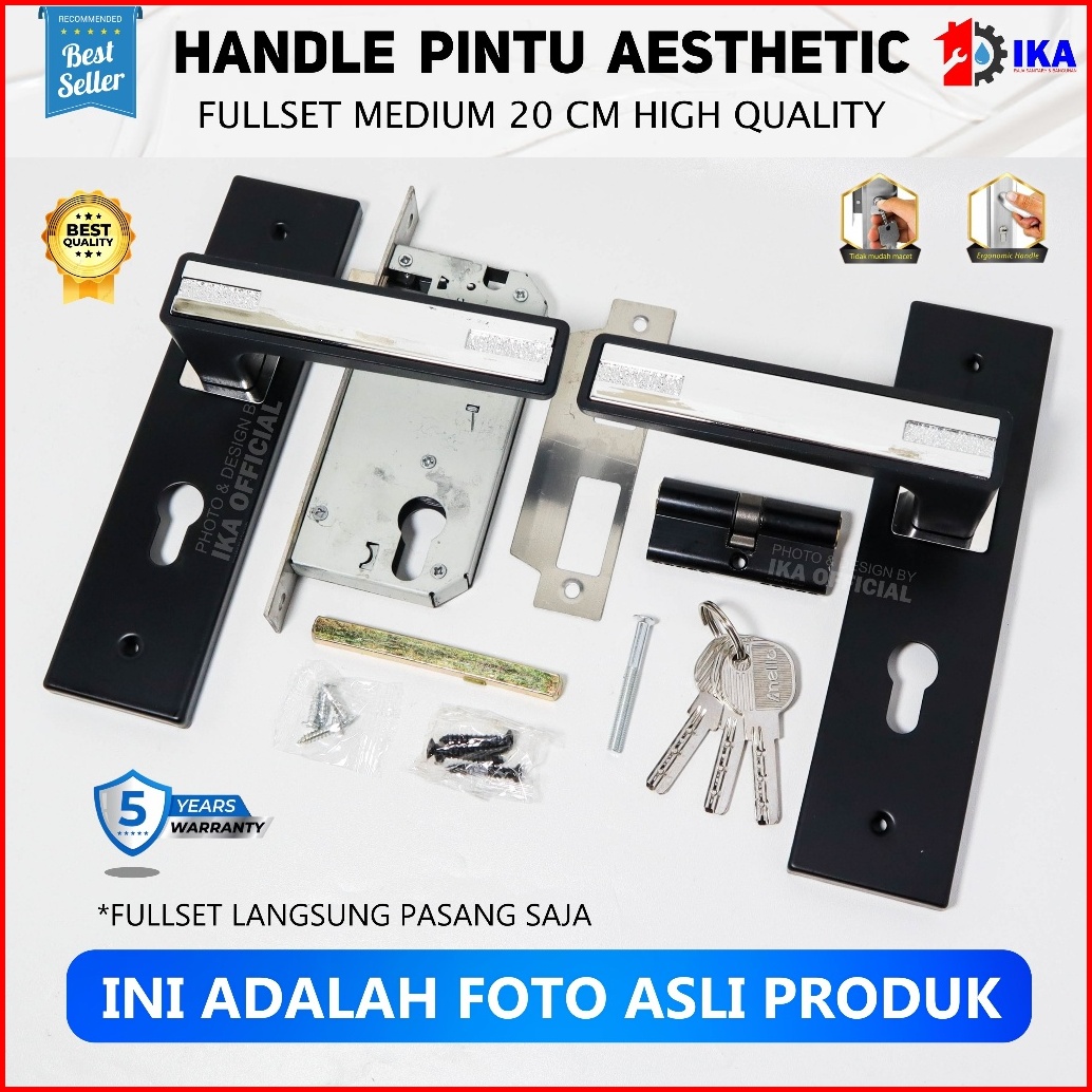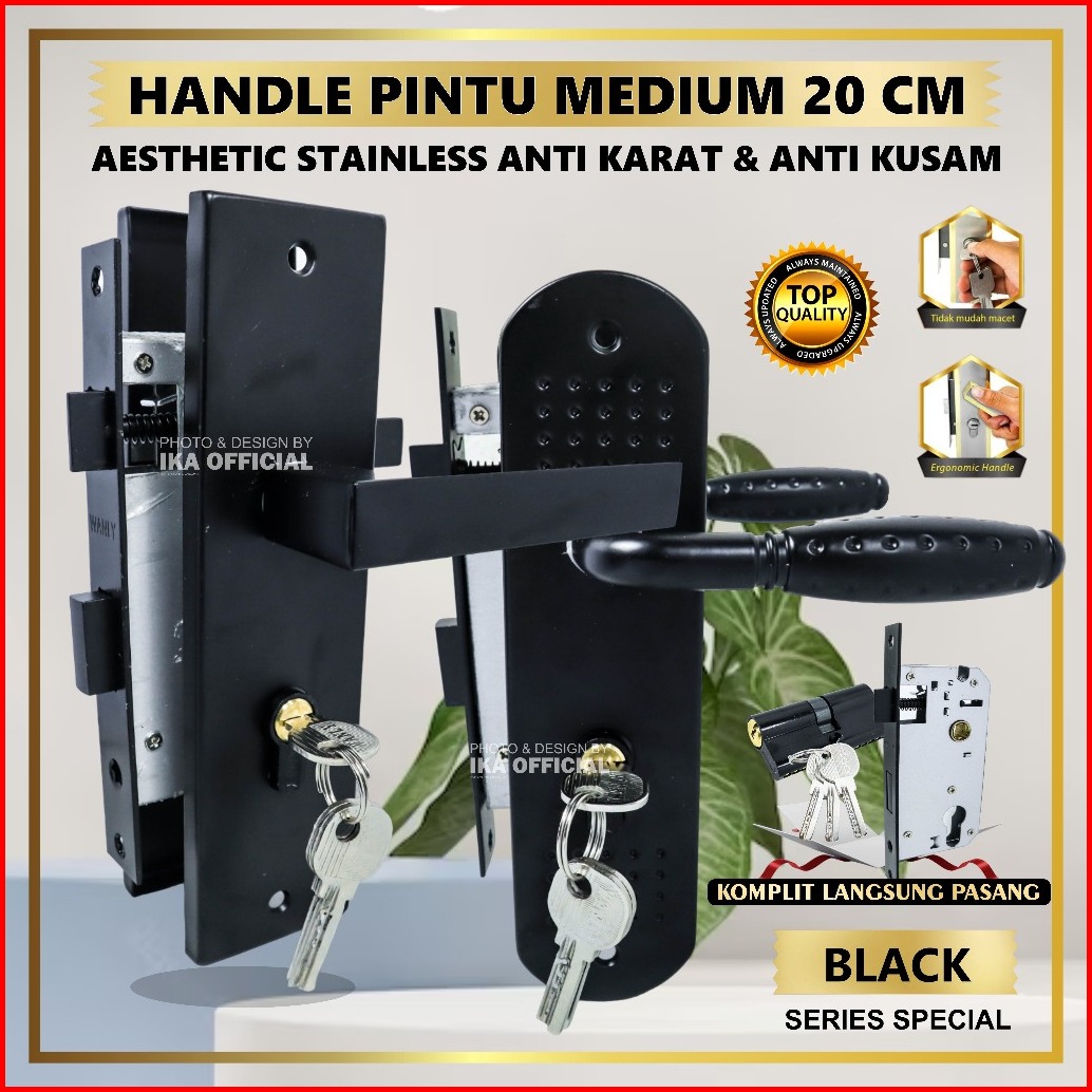 Gagang Kunci Pintu Handle Kunci Pintu Rumah Tanggung Set 20cm Crom Black Series Premium Mewah Elegan Minimalis