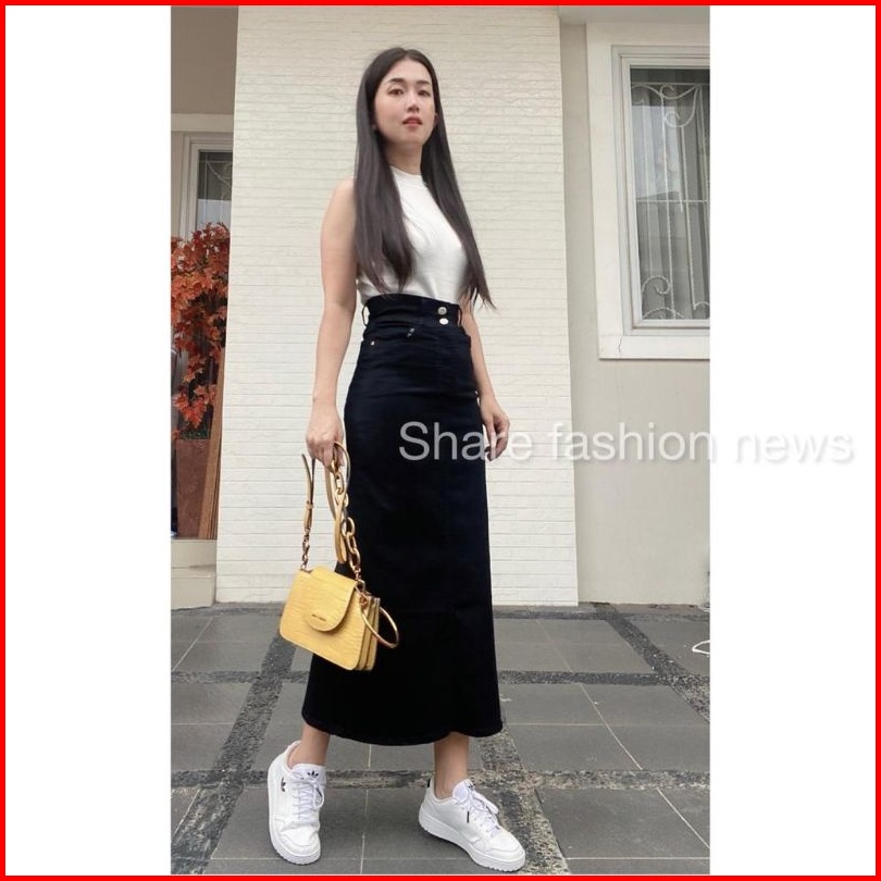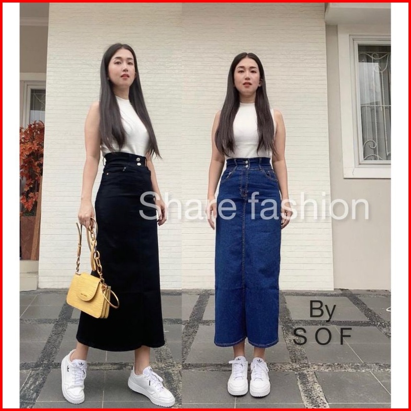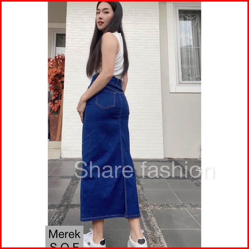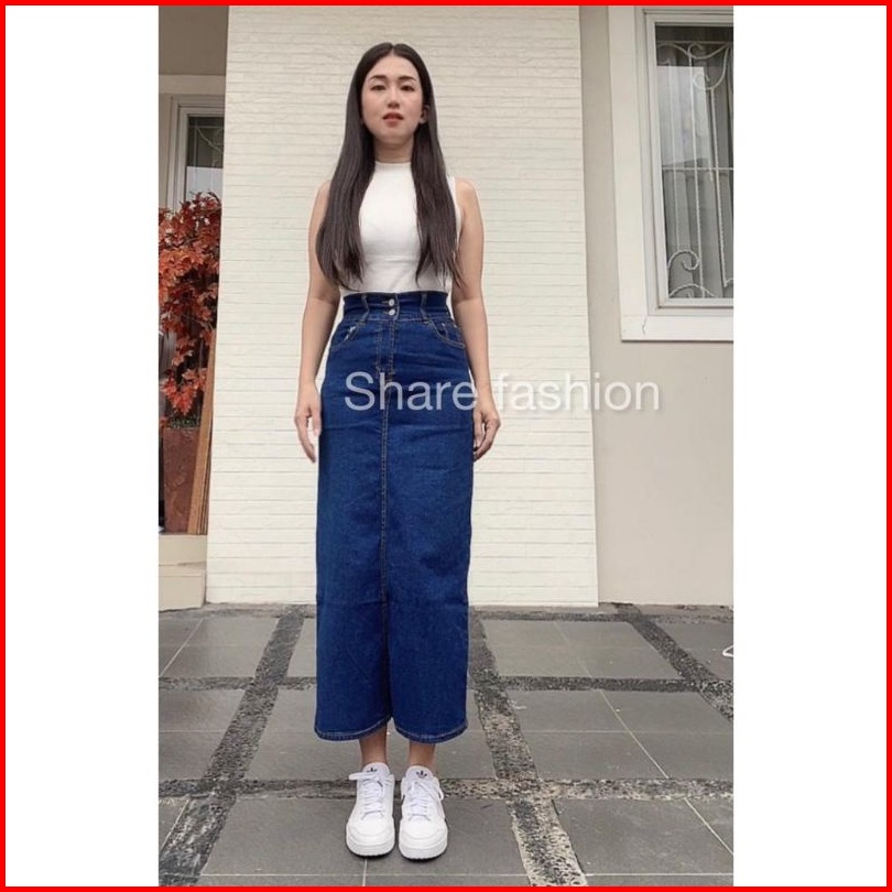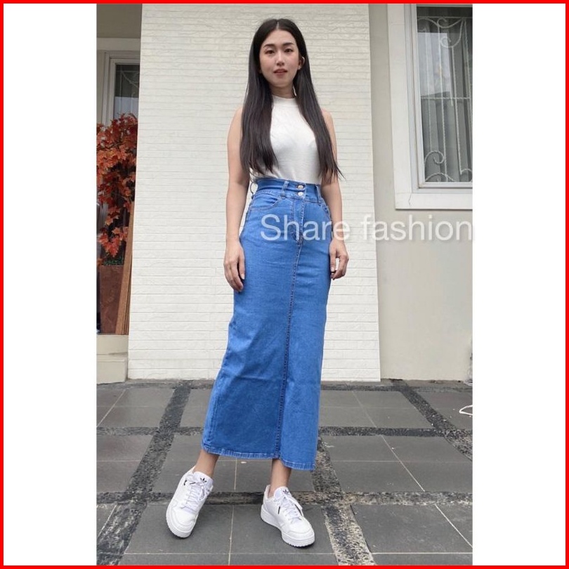 Rok Jeans Kancing 2 High Waist Rok Span Panjang 7 9 Rok Jeans Premium