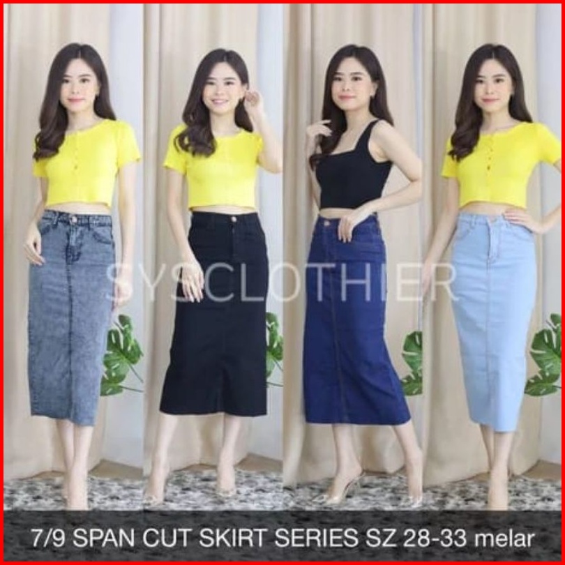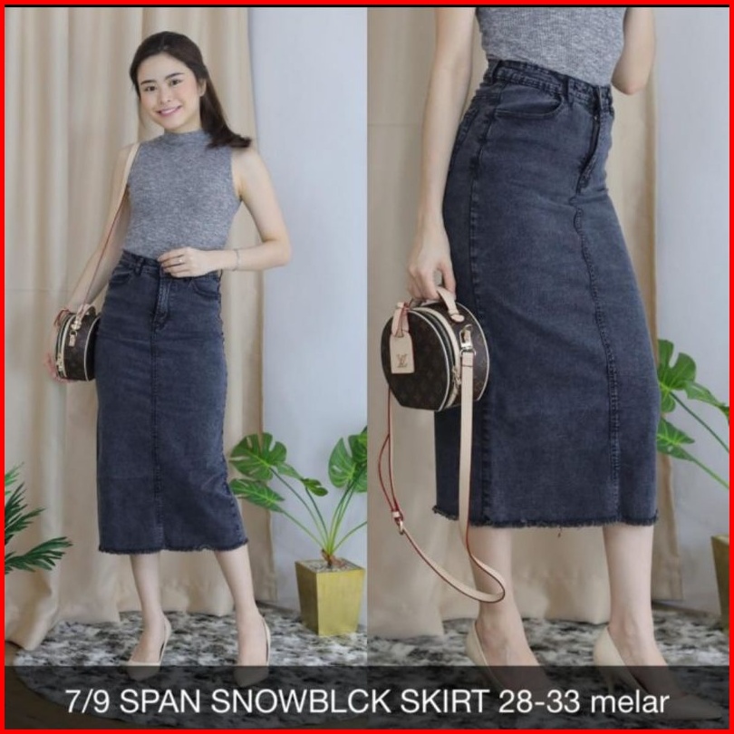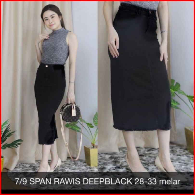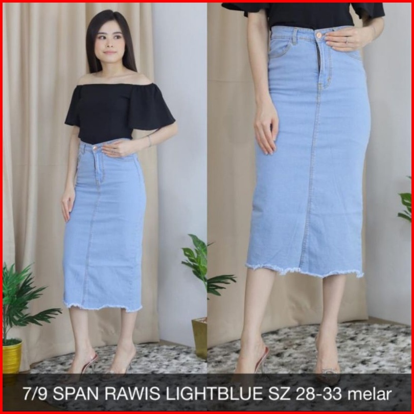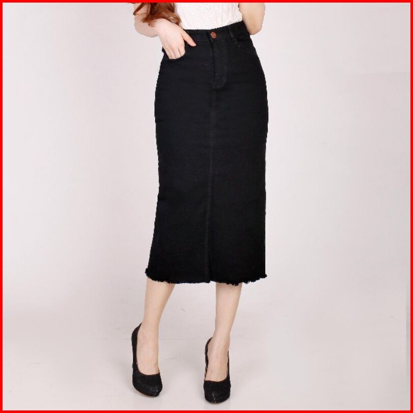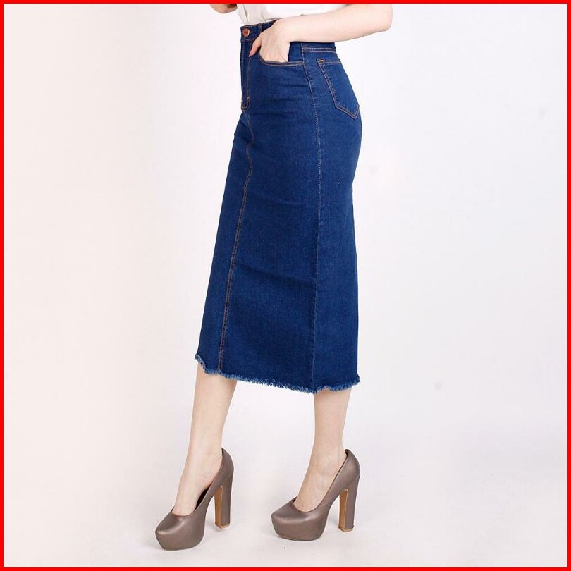 Rok Span Jeans Panjang Rawis Wanita Unfinished