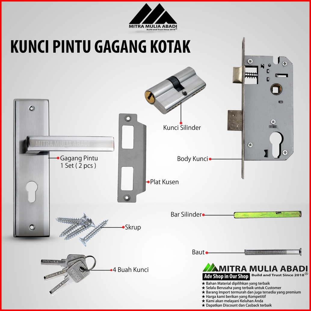 Kunci Pintu Rumah Full Set Gagang Kotak Premium Kualitas Terbaik 20cm
