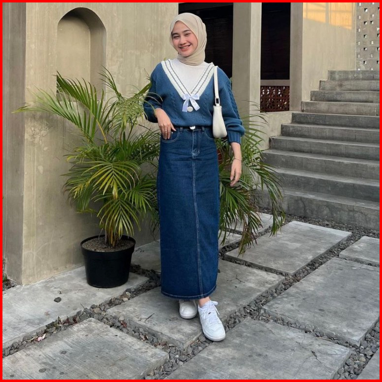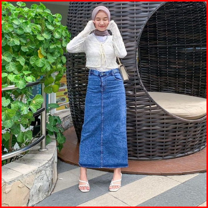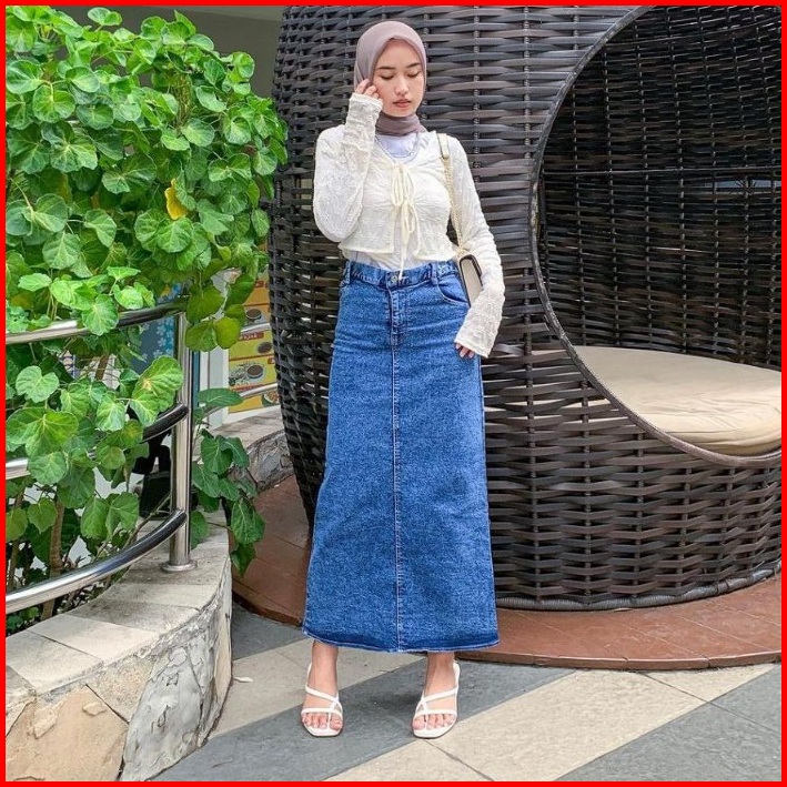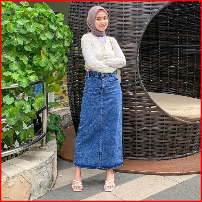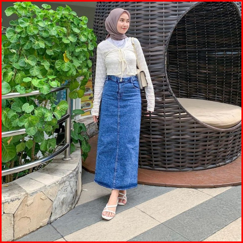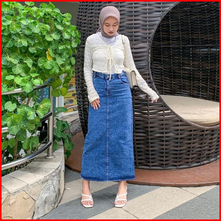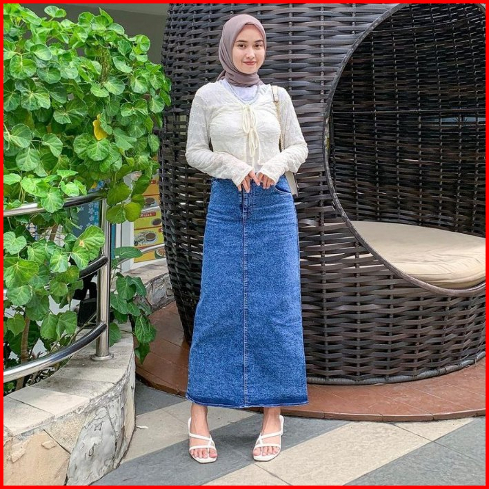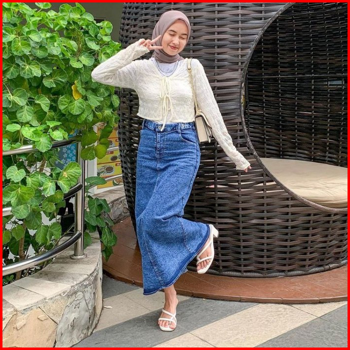 Rok Jeans Highwaist Wanita Panjang Terbaru 2024