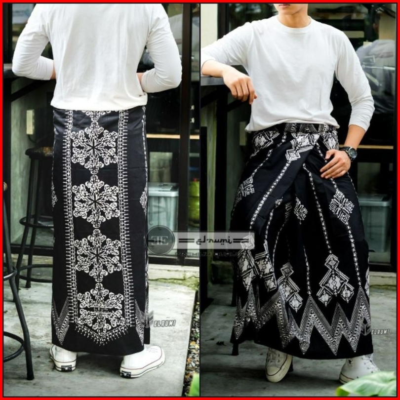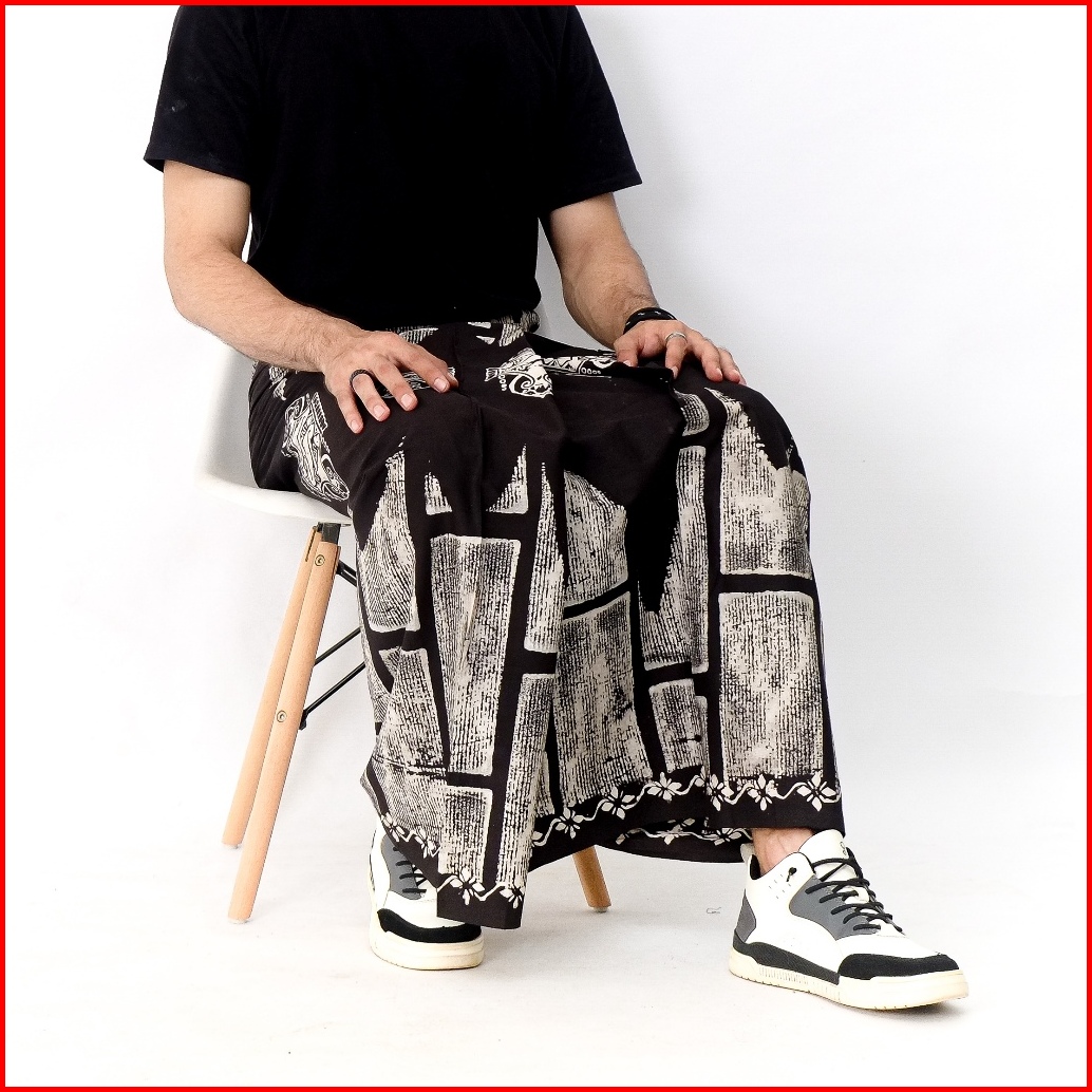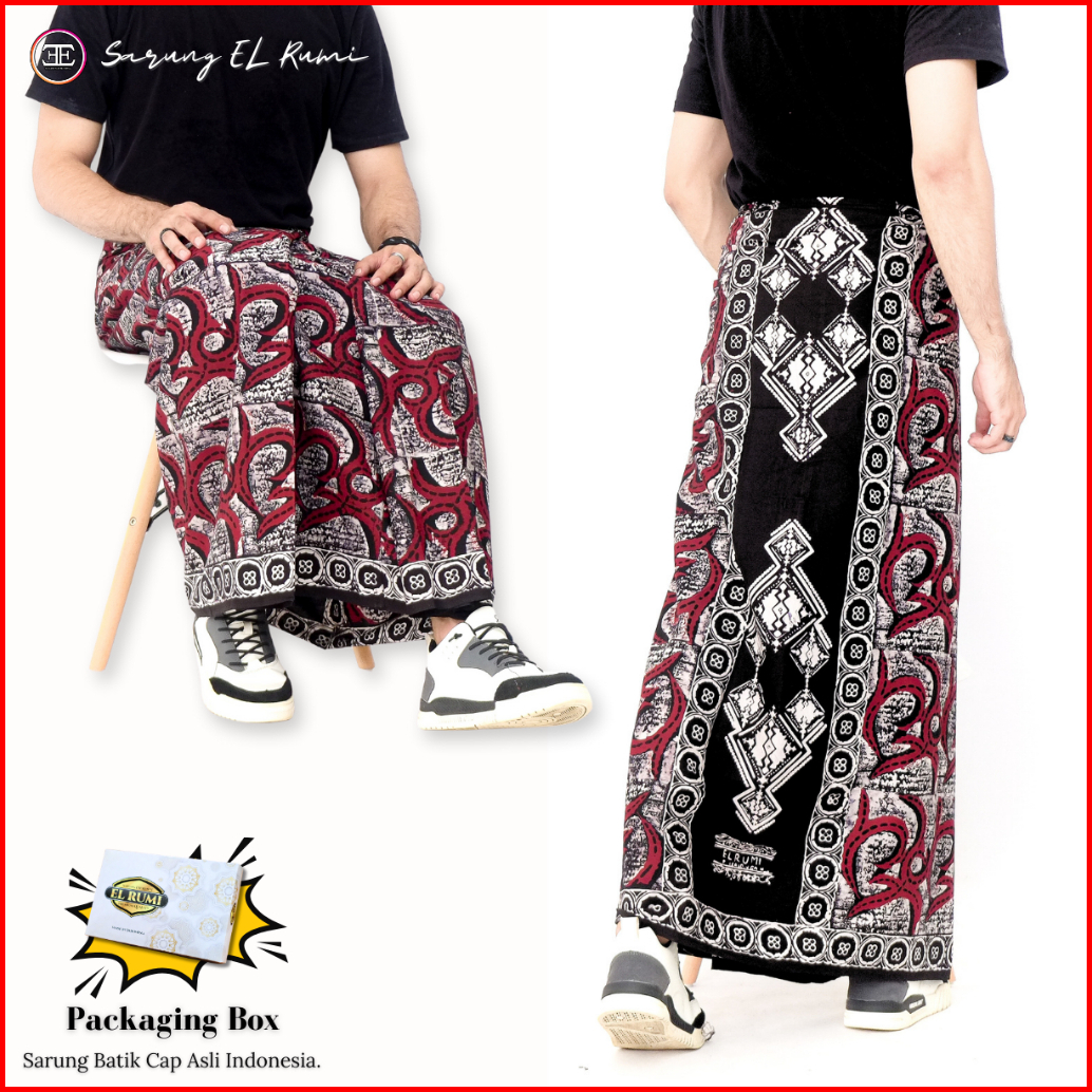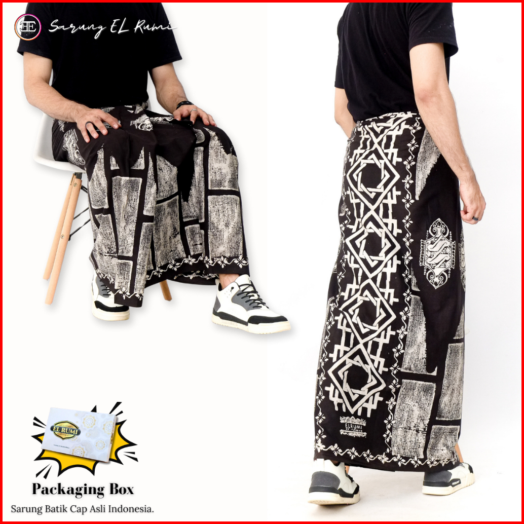 Sarung Pria Dewasa Batik Cap Original Elrumi Hitam Motif Bambu