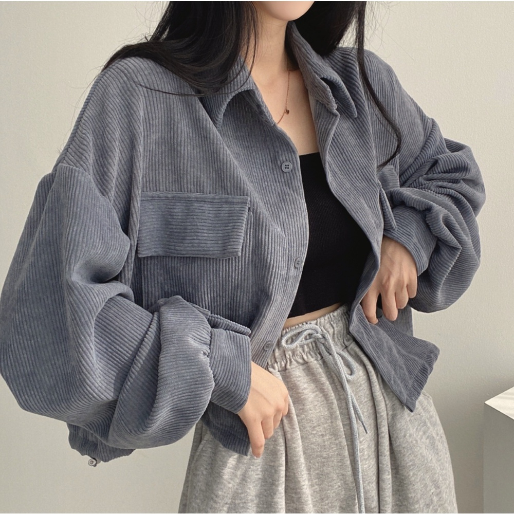 JAKET KORDUROI PENDEK RETRO WANITA WARNA SOLID ATASAN KOREA STYLE OUTERWEAR JAKET CROP WANITA TERBARU