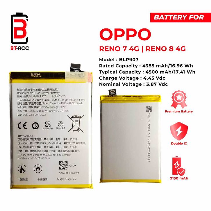 Baterai Batre Battery Oppo BLP907 Reno 7 Reno 8 BT ACC Original