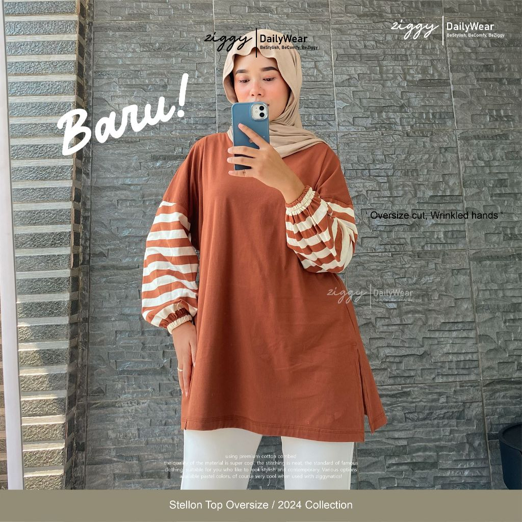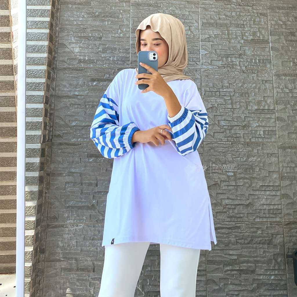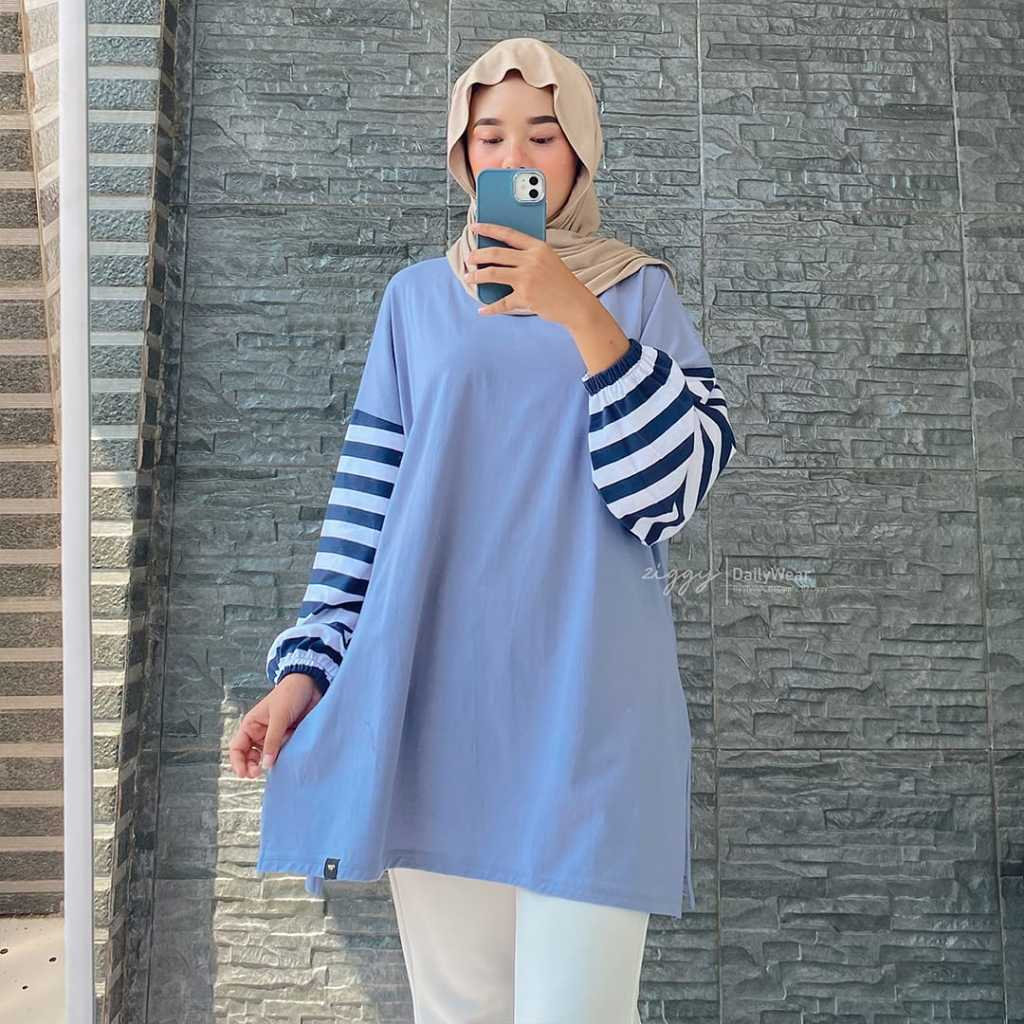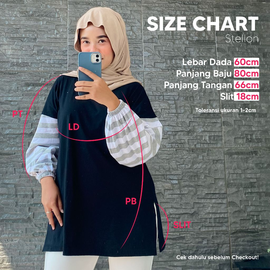 BLOUSE WANITA BALON KAOS TSHIRT KATUN LENGAN STRIPE KARET SALUR WANITA ATASAN WANITA TRENDY KEKINIAN TERMURAH TERLARIS