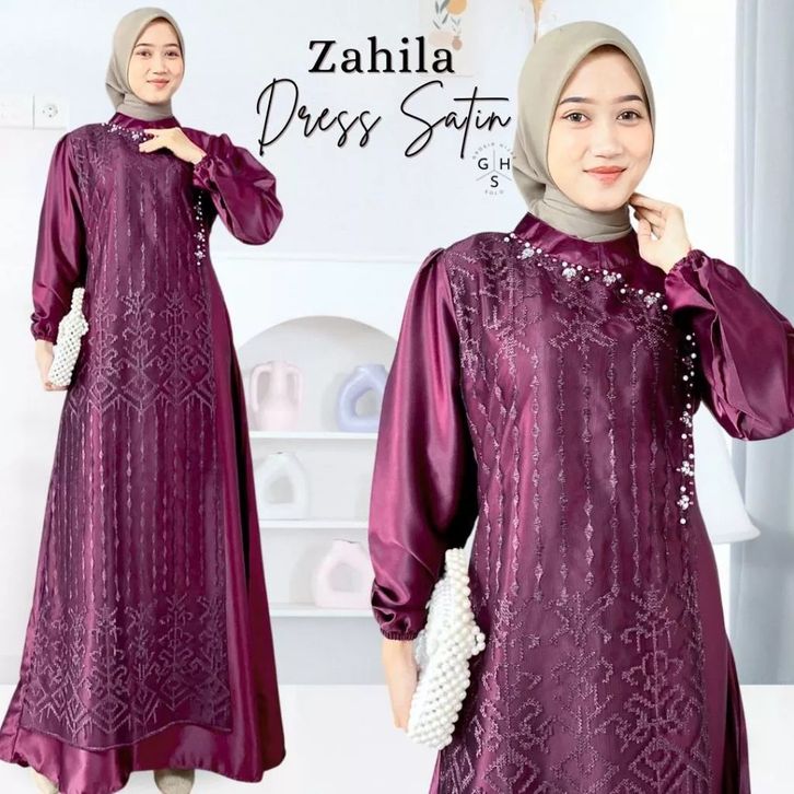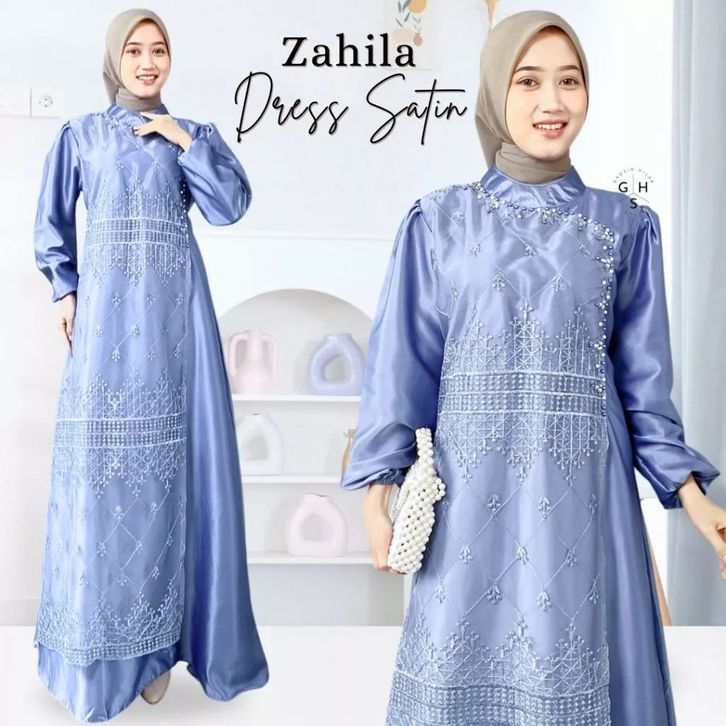 ZAHILA DRESS KONDANGAN WANITA DRESS BROKAT SATIN PREMIUM GAMIS KONDANGAN WANITA KEKINIAN GAUN PESTA WANITA MODERN