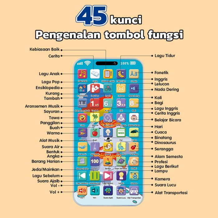 [Mall]Smart Baby Mainan Pendidikan Telepon Cerdas yang Sangat Populer dengan 45 Tombol Fungsi+Lampu+Konten Audio Lengkap