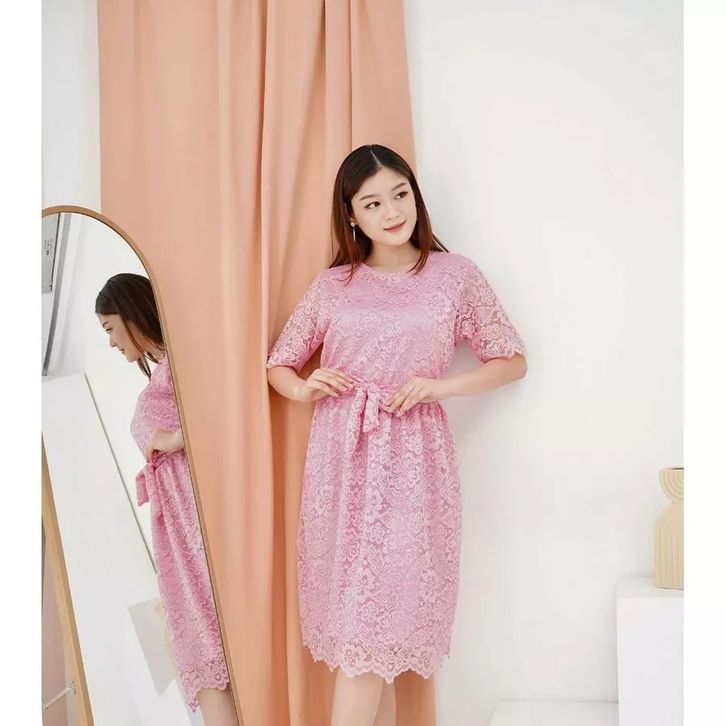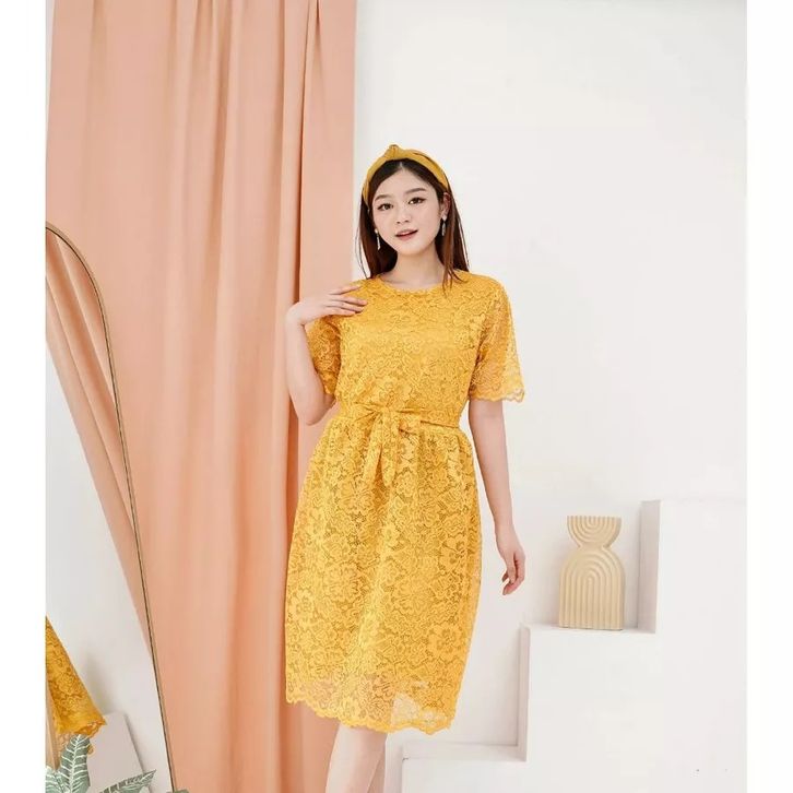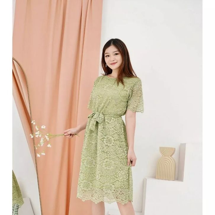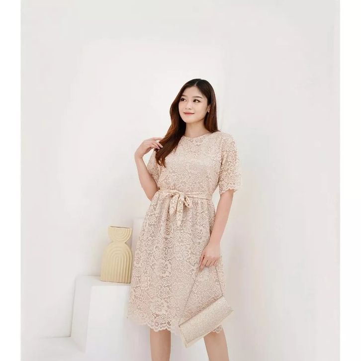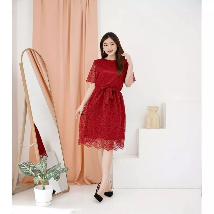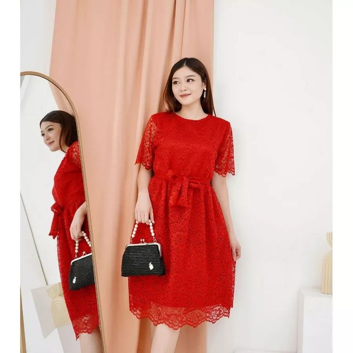 Melisa Dress Brukat Corneli Tebal Dengan Belt Dress Kondangan Natal Gereja Imlek Dress Natal Dress Wanita Kekinian 2025