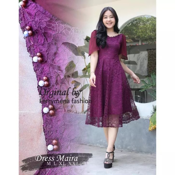 Dress Maira Model Terbaru Dress Wanita Dres Natal Payet Elegan Mewah Seragam Dres Natal Gaun Natal Wanita Dress Merah Na