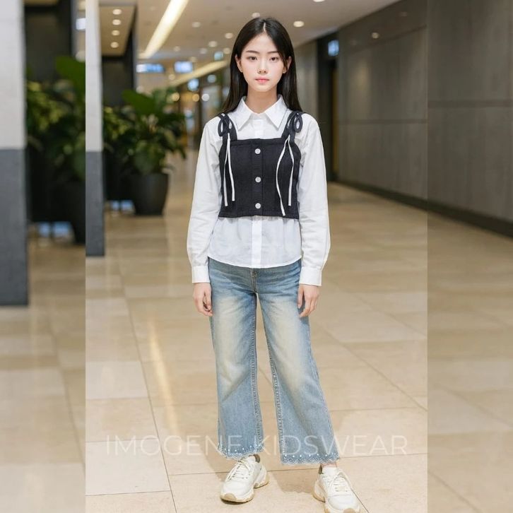 Setelan Celana Kulot Panjang Jeans Ala Korean Style Setelan Baju Anak Perempuan Import Setelan Anak Perempuan 6-12 Tahun
