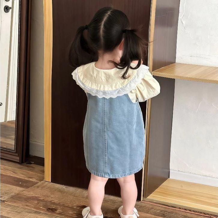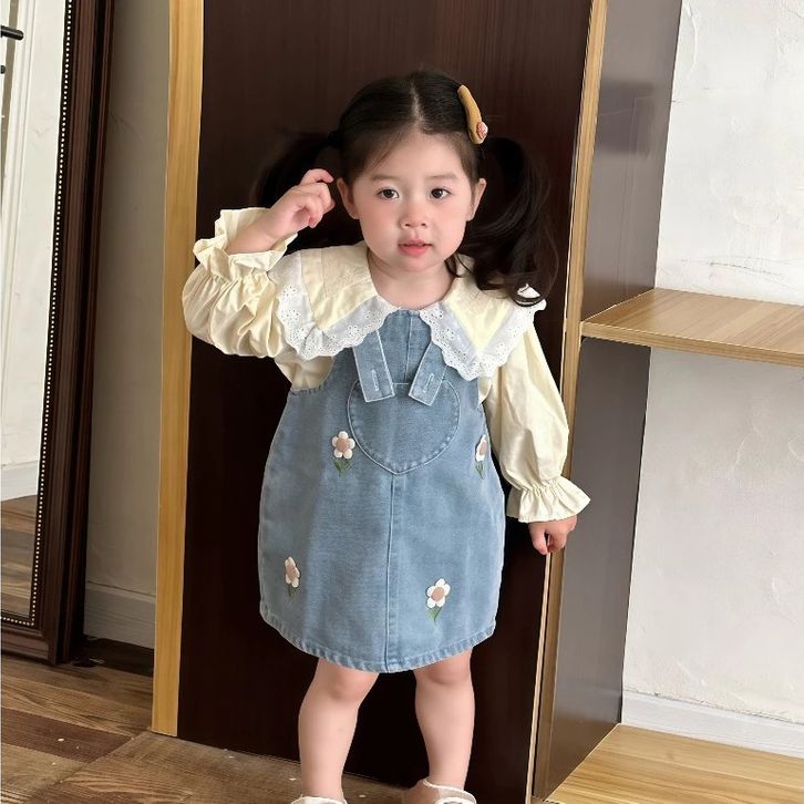 Setelan Anak Rok Vest Denim Anak 2025 Dengan Atasan Katun Setelan Anak Perempuan 1-5 Thn Fashion Anak Cewek Baju Lebaran