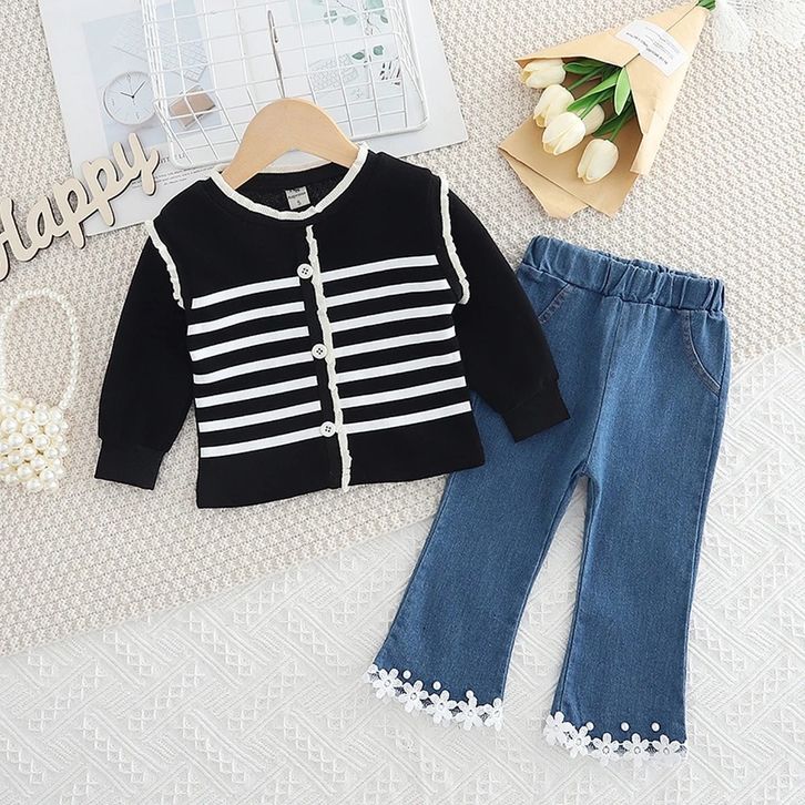 Setelan Lengan Panjang Anak Perempuan Bahan Katun Premium Korea Style Setelan Anak Perempuan 1-4 Tahun Baju Set Anak Ce