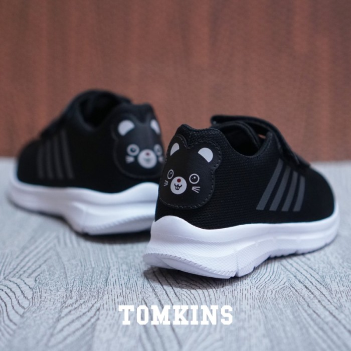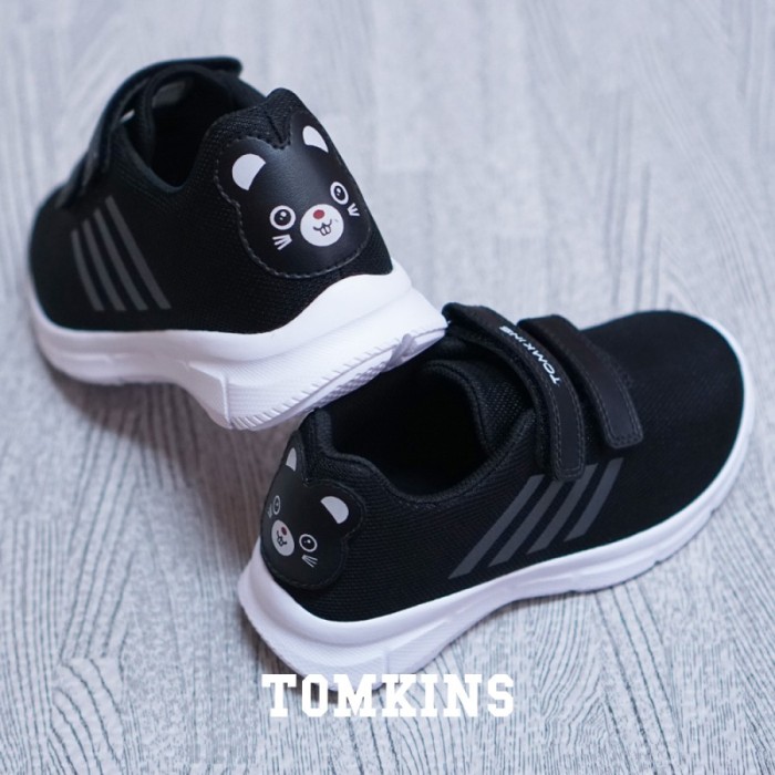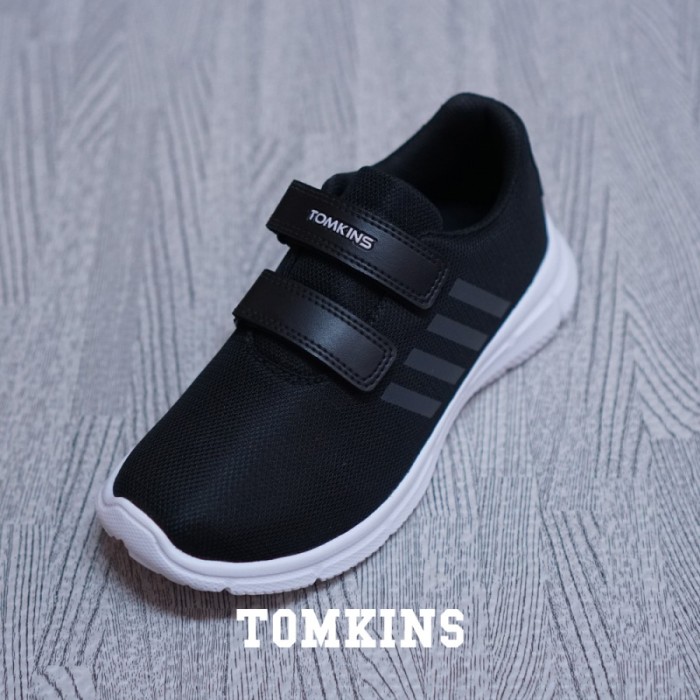 TOMKINS STRAYS - HITAM PUTIH SEPATU ANAK PEREKAT SNEAKERS SEKOLAH - 30