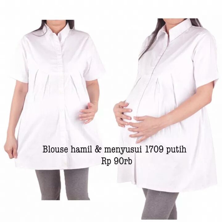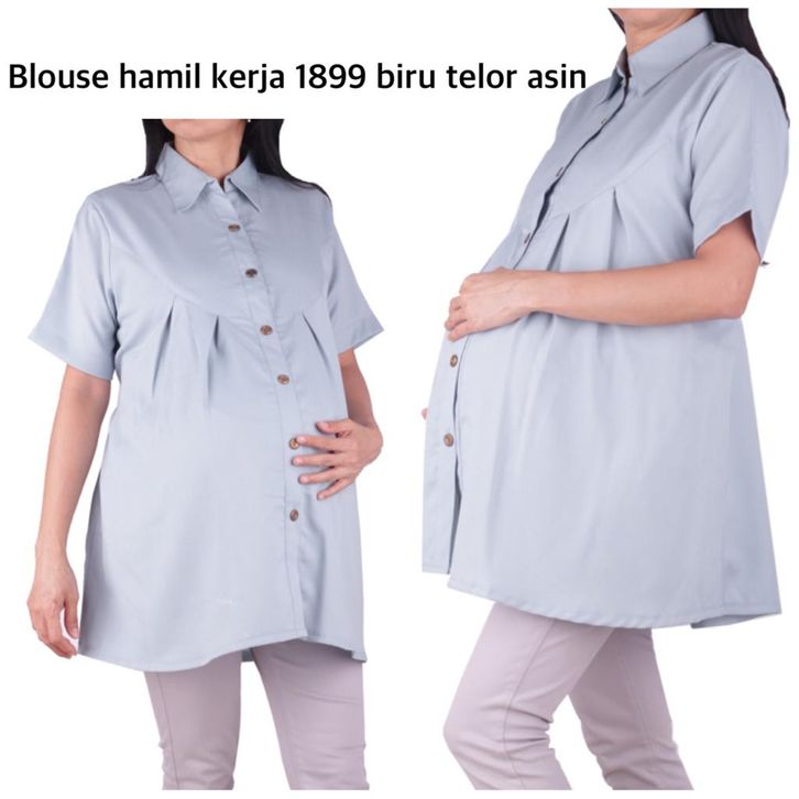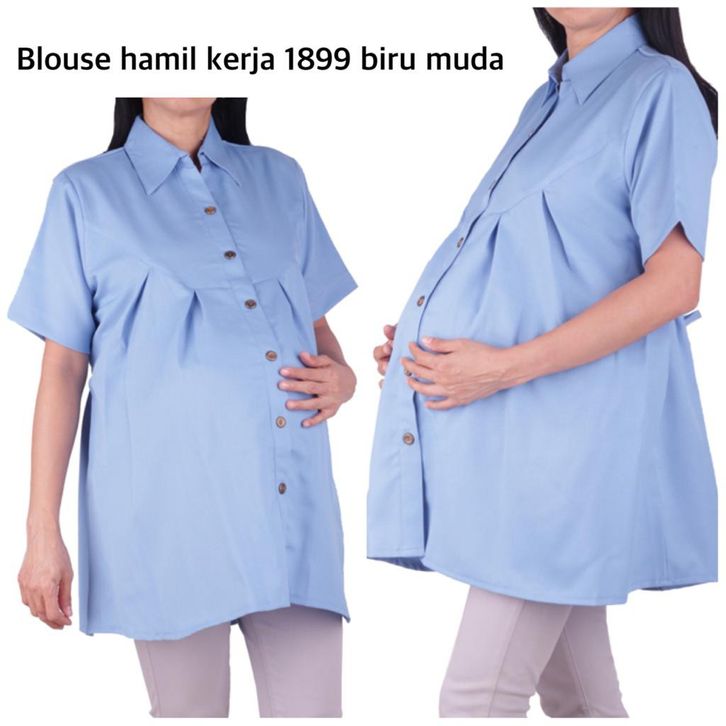 Baju Hamil Wanita Blouse Atasan Menyusui Bumil Kasual Lengan Pendek Kancing Depan Allsize Moscrepe Halus Tebal Stylish