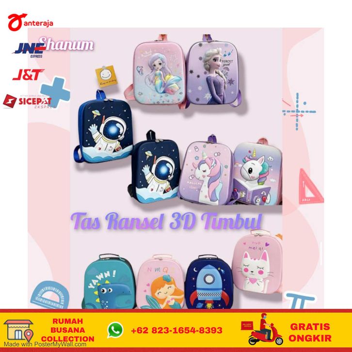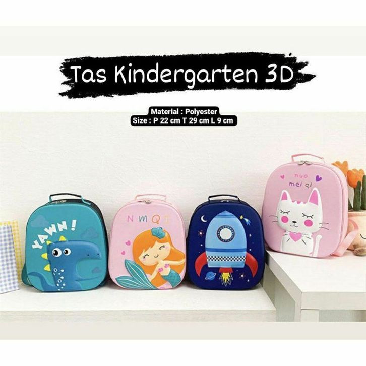 Tas Ransel 3D Timbul Dino Mermaid Unicorn Roket Tas Sekolah PAUD TK Anak Perempuan Laki