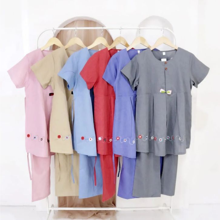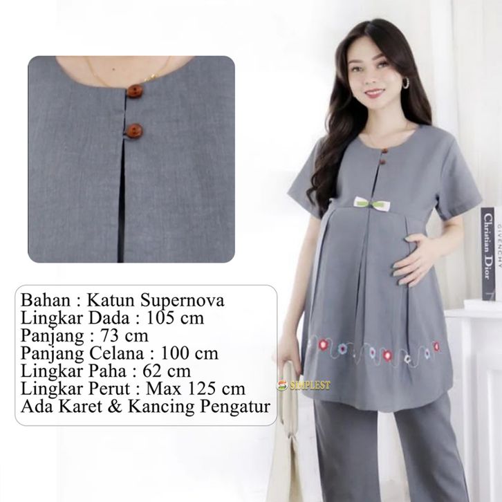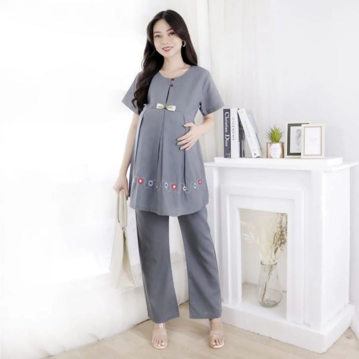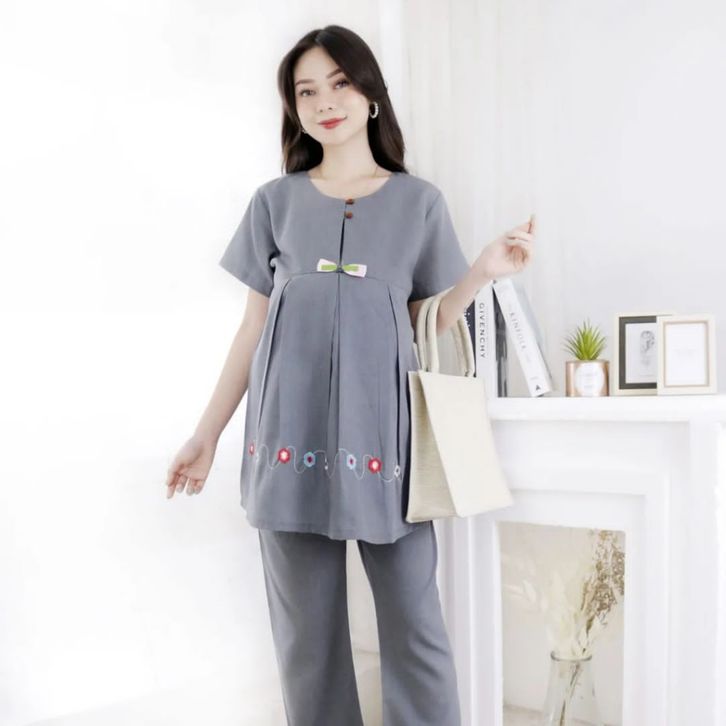 Baju Setelan Hamil Menyusui Wanita Lengan Pendek Celana Panjang Santai One Set Busui Bumil Casual Katun Halus Stylish