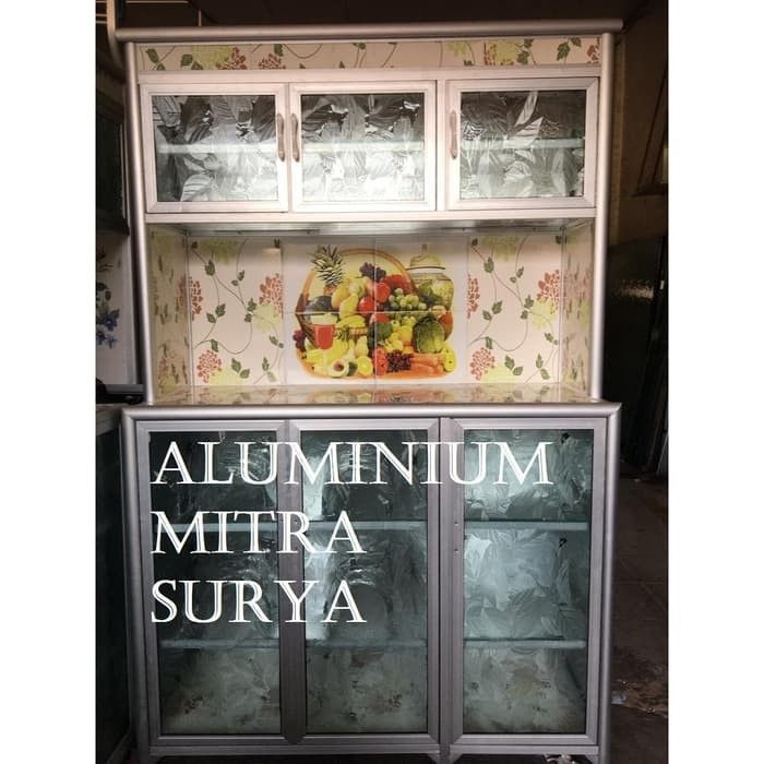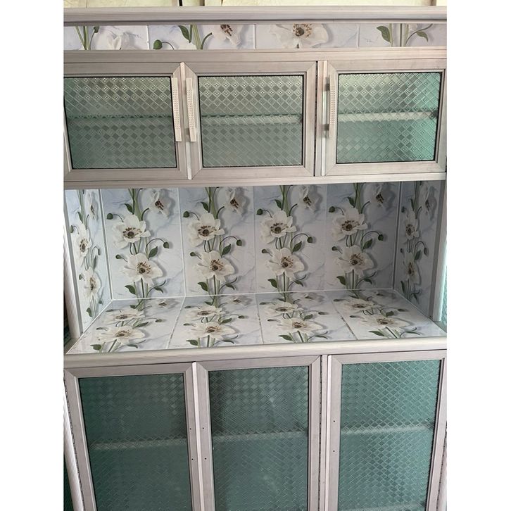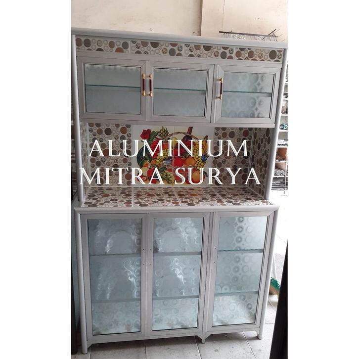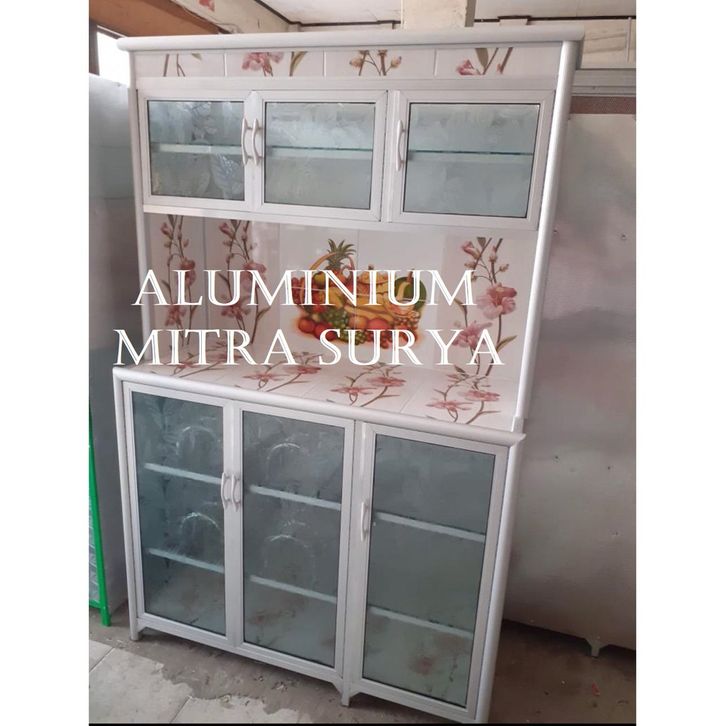 Rak Piring Kaca Keramik Rak Piring Minimalis Modern Rak Piring Aluminium Kaca Keramik Super 3 Pintu RATA (CA) Lemari Pir