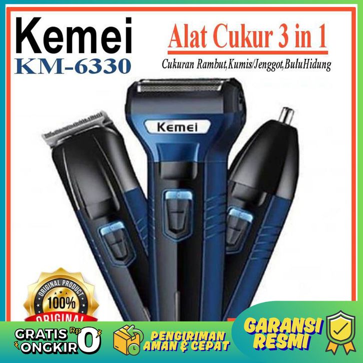 PROMO KEMEI 6330 KM ELEKTRIK MESIN ALAT CUKUR RAMBUT 3 IN 1 JENGGOT KUMIS BULU HIDUNG KM6330 ORIGINAL