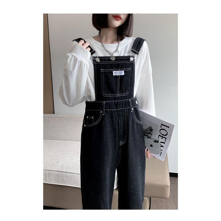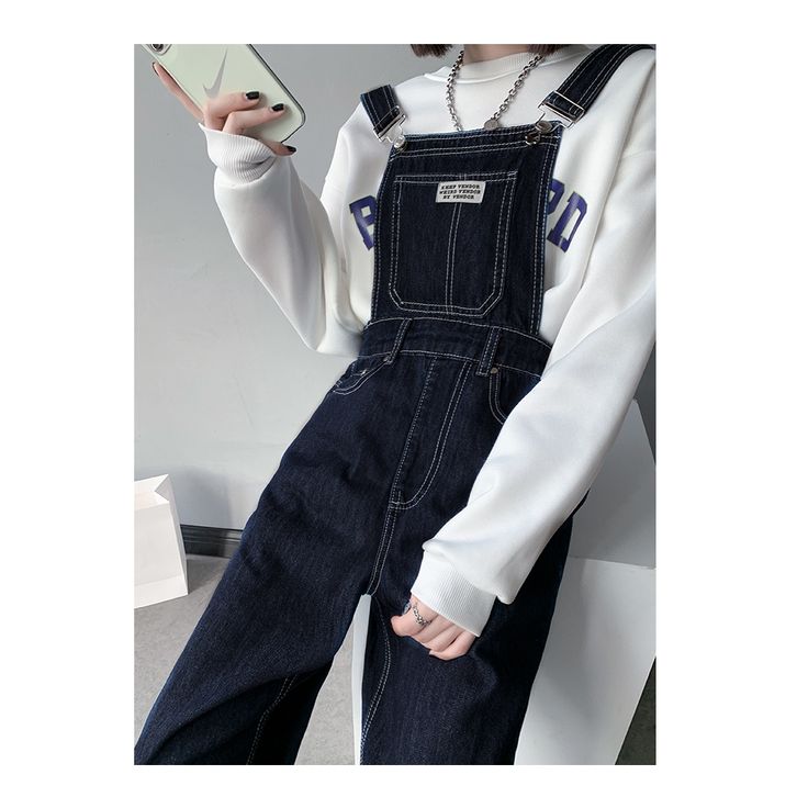 Celana Overall Denim Plus Size Kodokan Cewe Kaki Lebar Longgar Korean Style Casual Fashion Kekinian Hitam S XXL