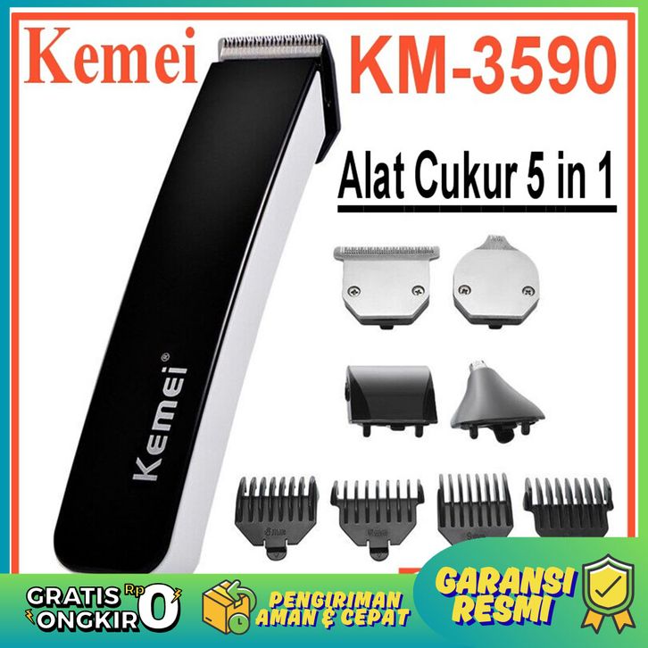 PROMO ORIGINAL KEMEI 3590 5 IN 1 HAIR CLIPPER ALAT MESIN CUKUR POTONG UKIR RAMBUT KUMIS JENGGOT JAMBANG KM3590 KM-3590